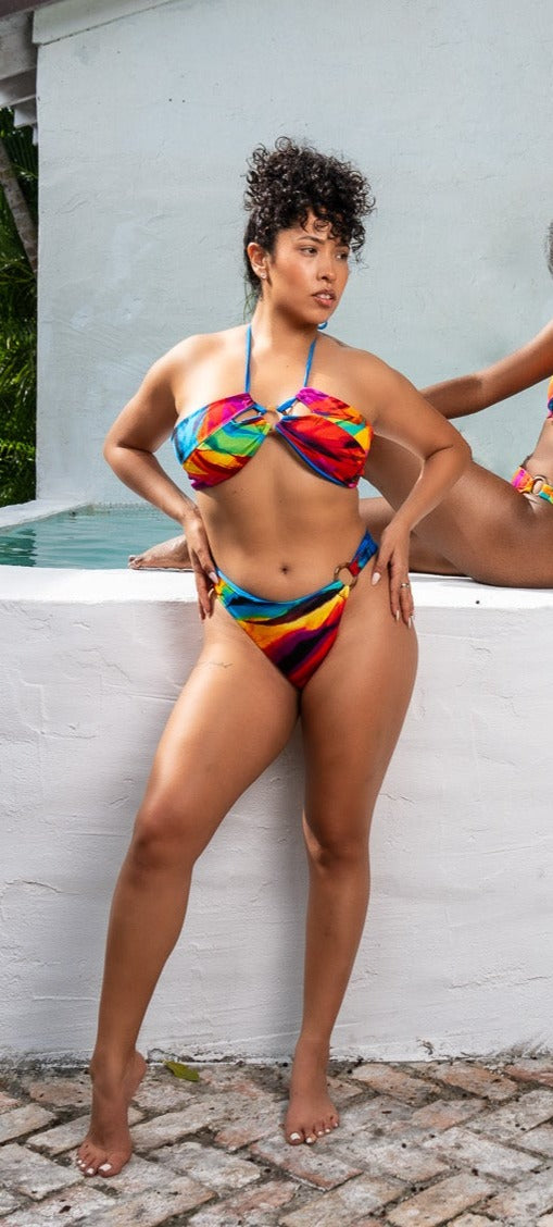 The Reverie Scrunch Bottom sits just under the waist for a low rise fit. This bottom features a scrunch back coverage and is also accented with o-ring hardware for the perfect bikini combo!