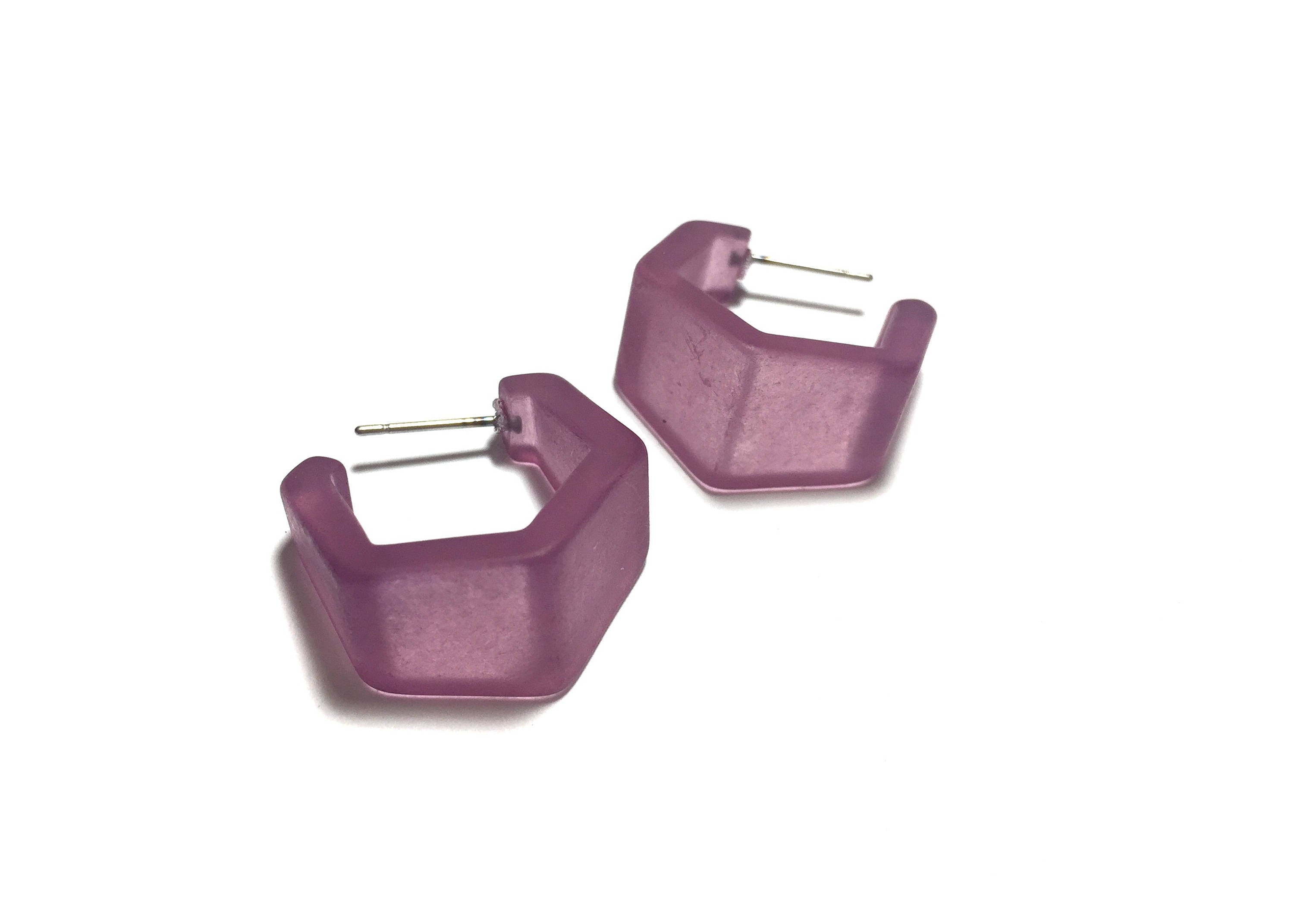 Amethyst Frosted Hexagon Geo Hoop Earrings