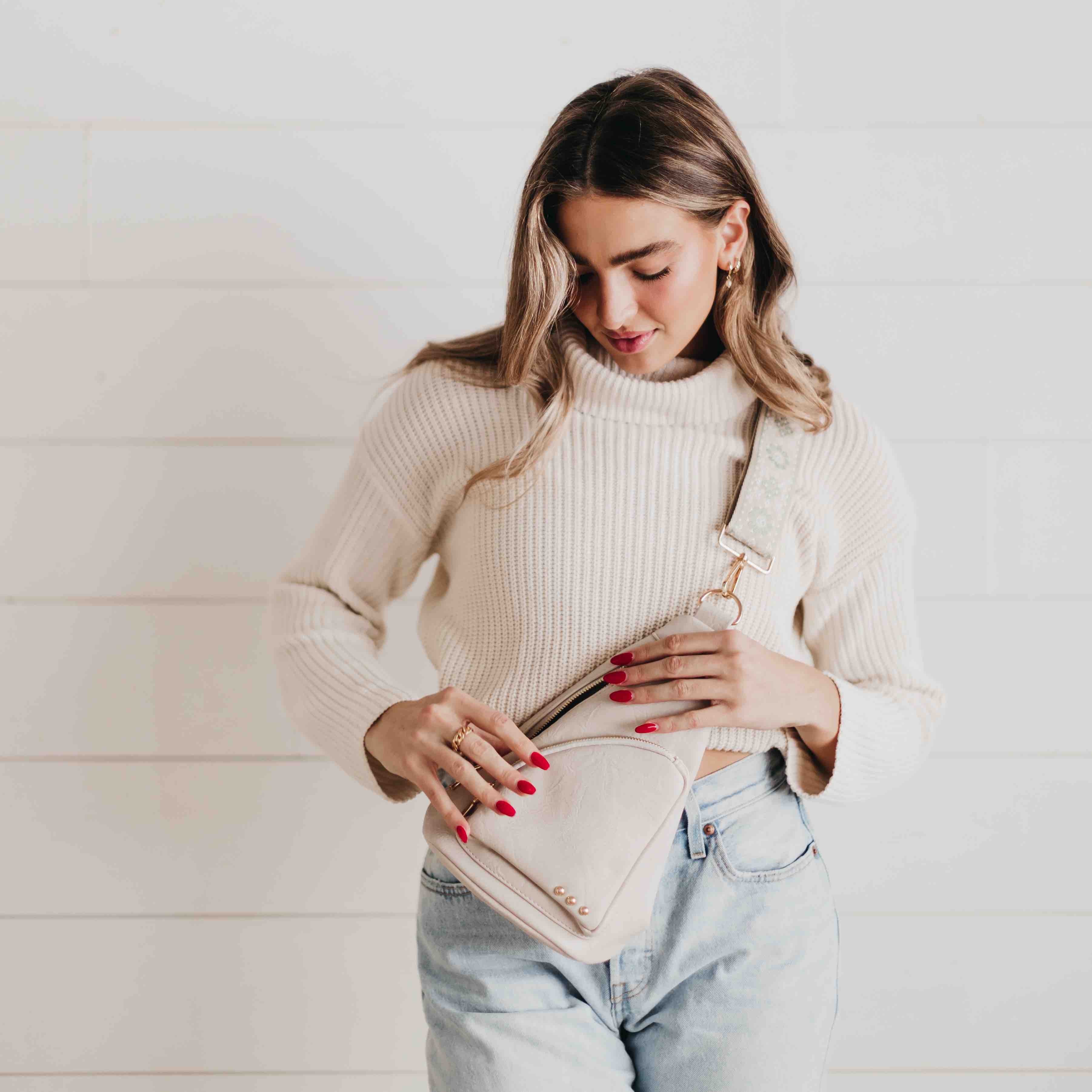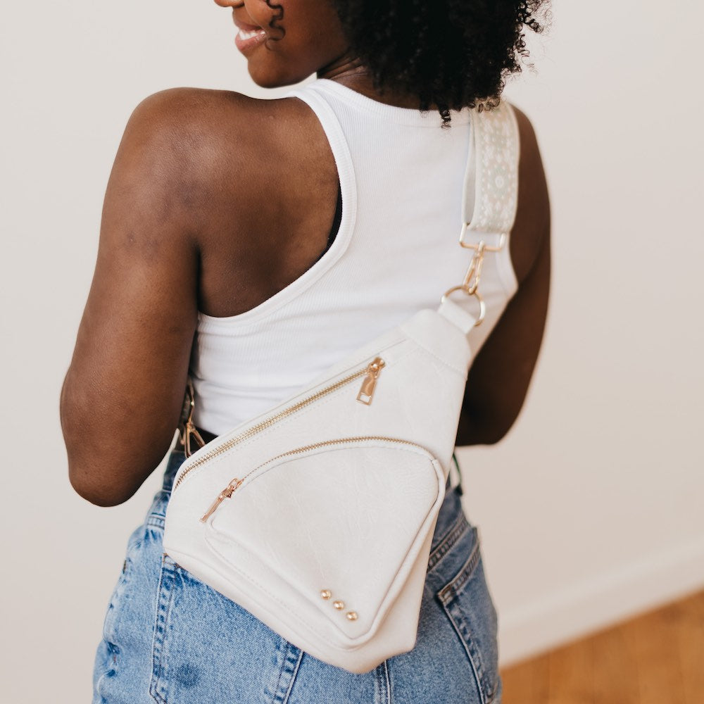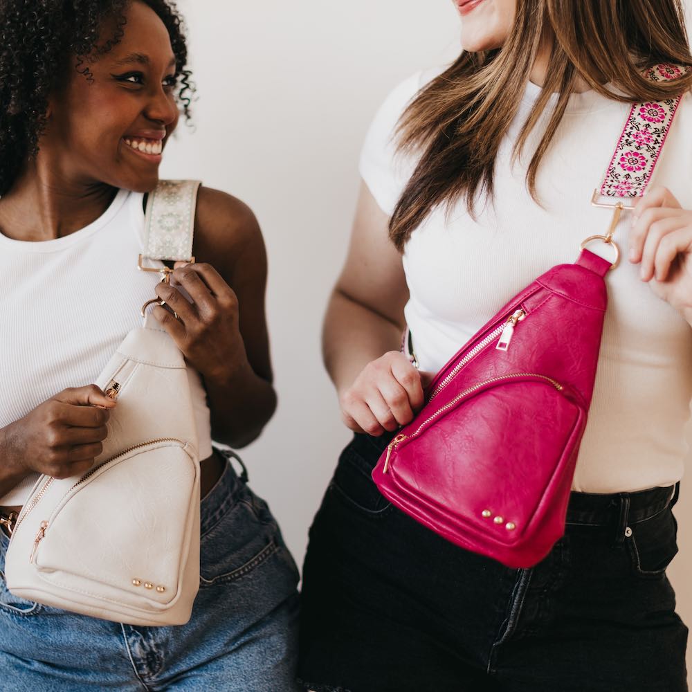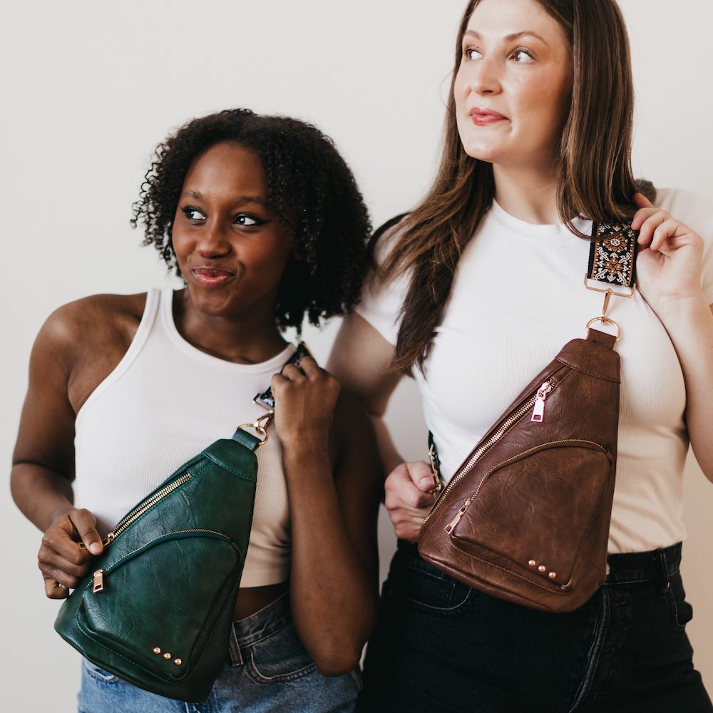 The Austin Sling Bag is another addition to our 3 Sisters Collection! This collection is inspired by the unbreakable bond shared between the owner/founder of Pretty Simple and her 2 sisters. These bags are marked with three signature studs and will complete outfits, catch eyes, and remind wearers of the incredible connection to their own sisters, whether through blood or by choice. You can see it in our inspiration and mission.