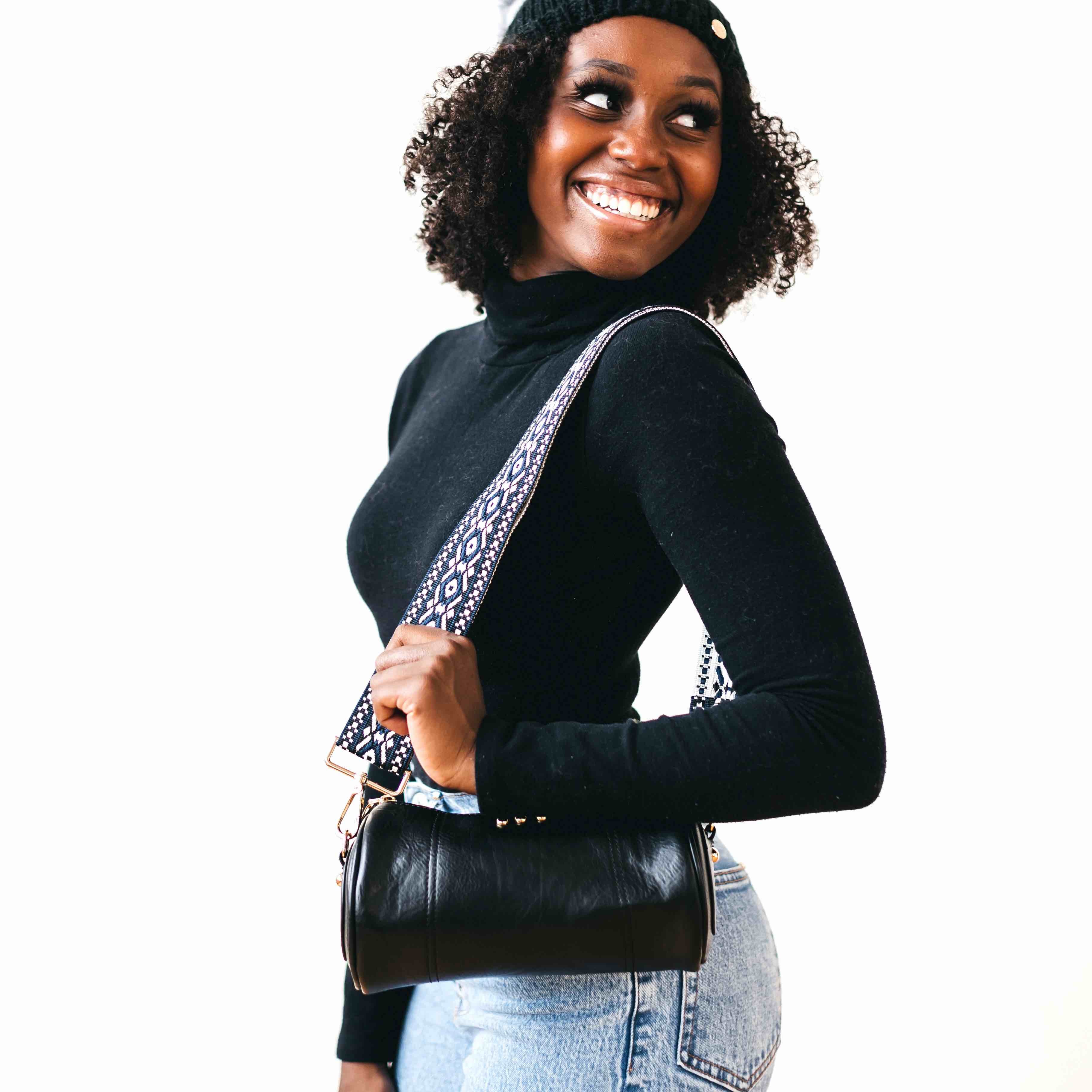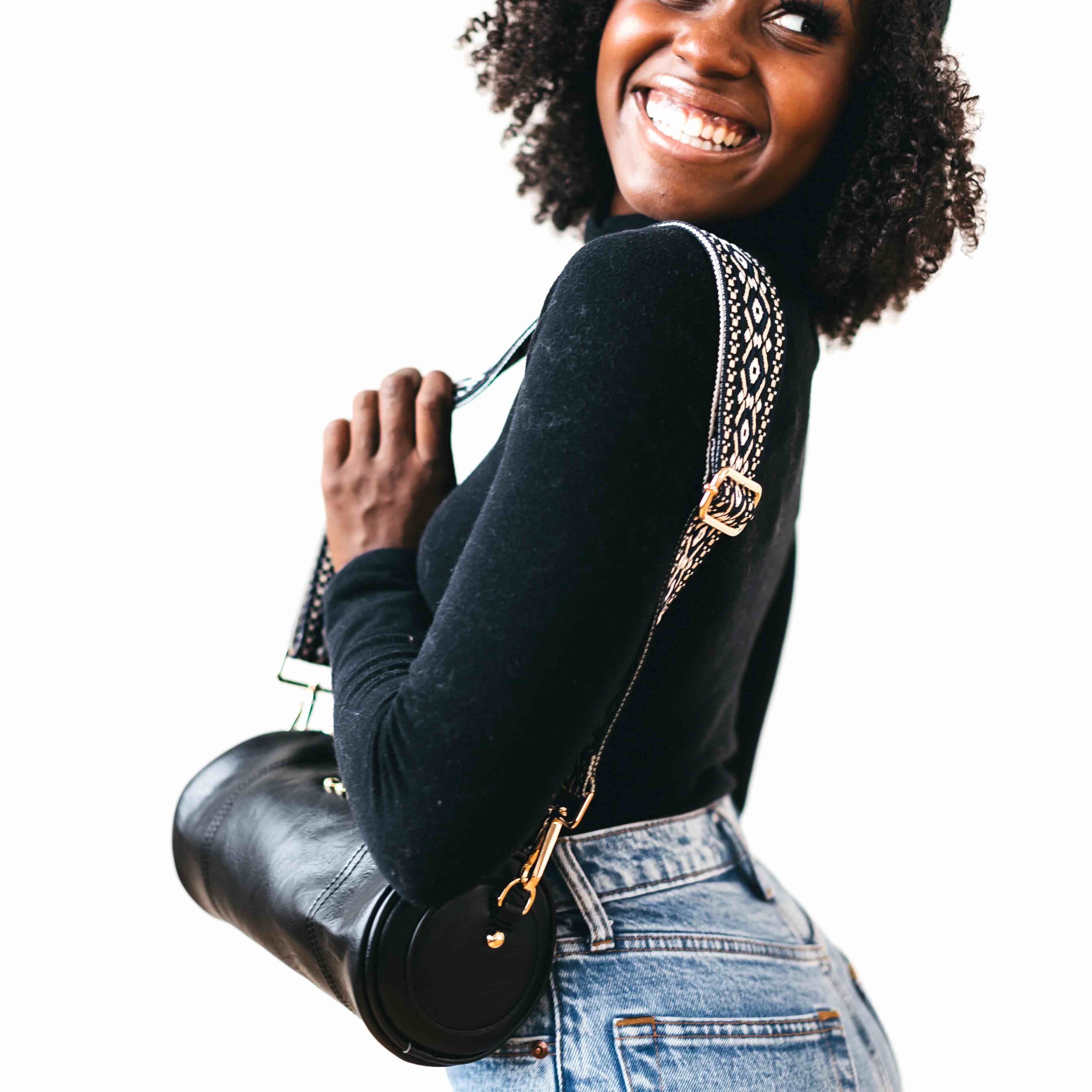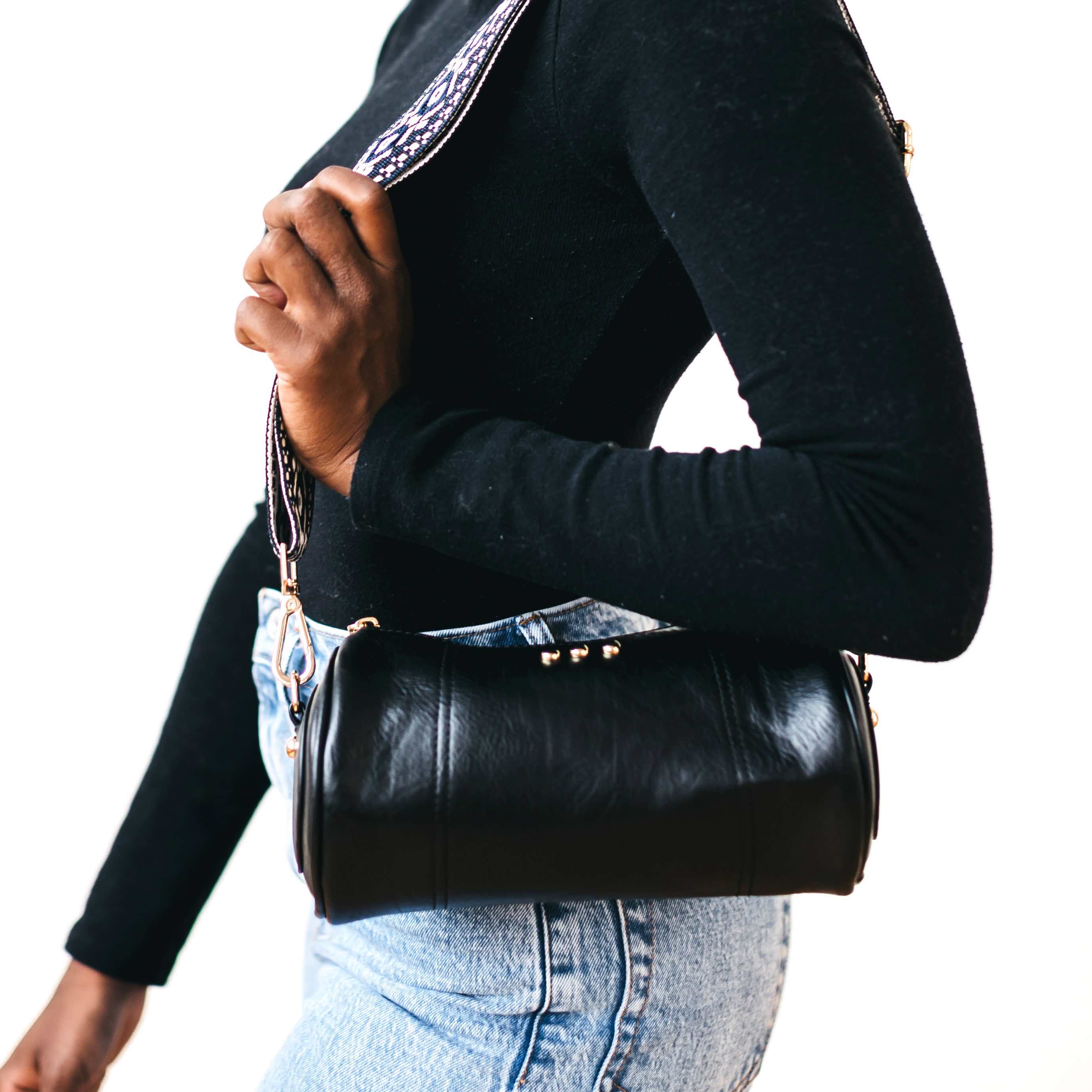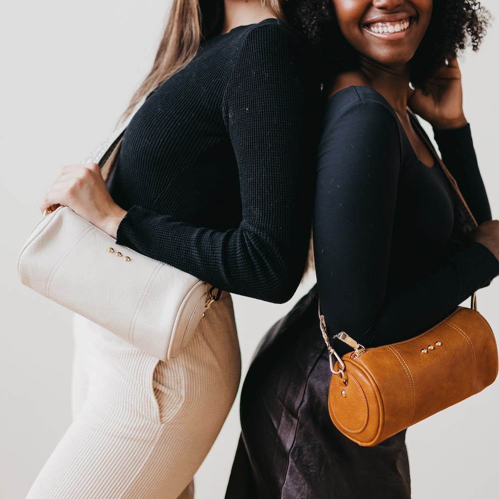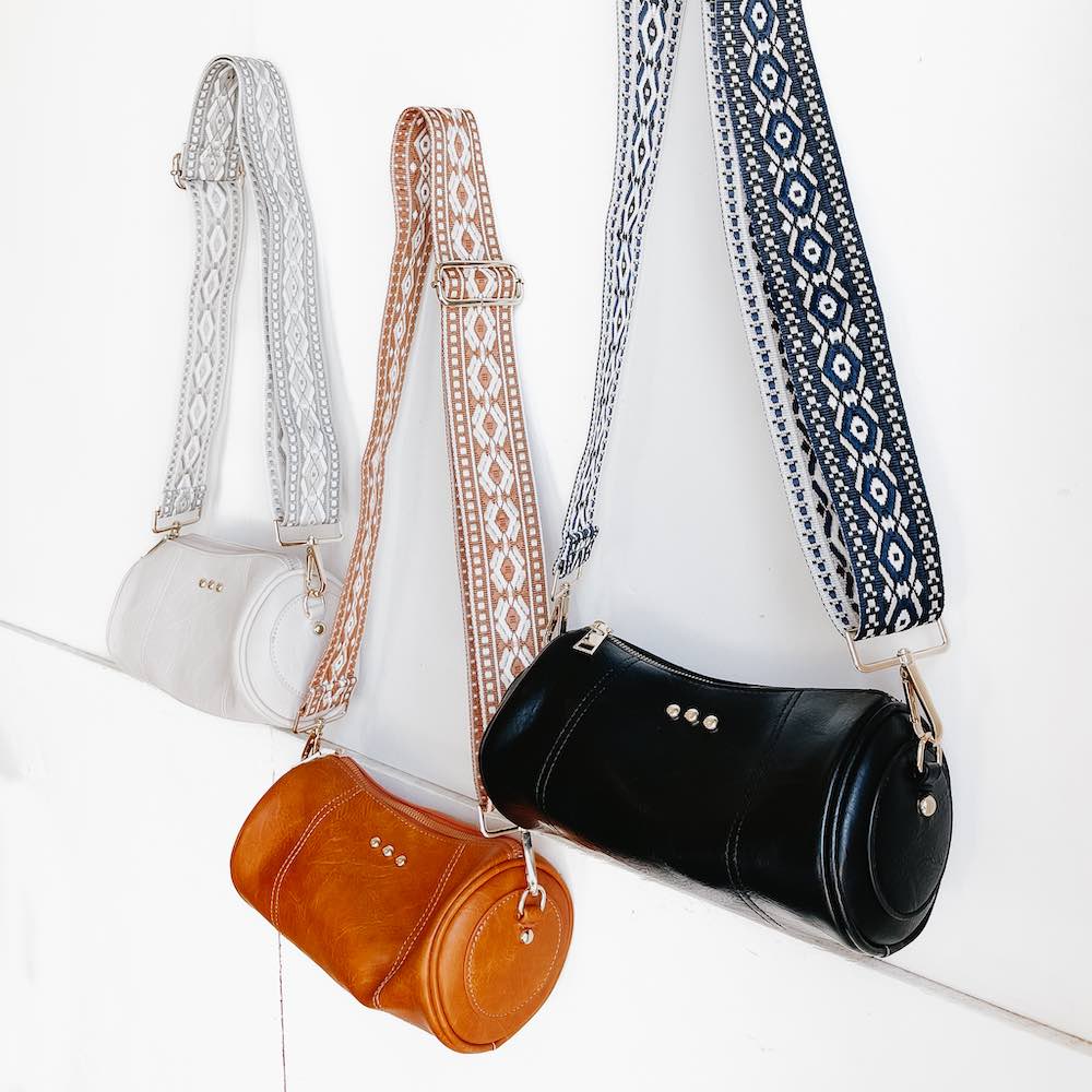 - Styling Tip: Style your Bellamy Barrel Bag with your favorite dress or denims, and pair it with our Luna Wrist & Strap pouch, a Pretty Simple hair scarf, or wide brim hat!