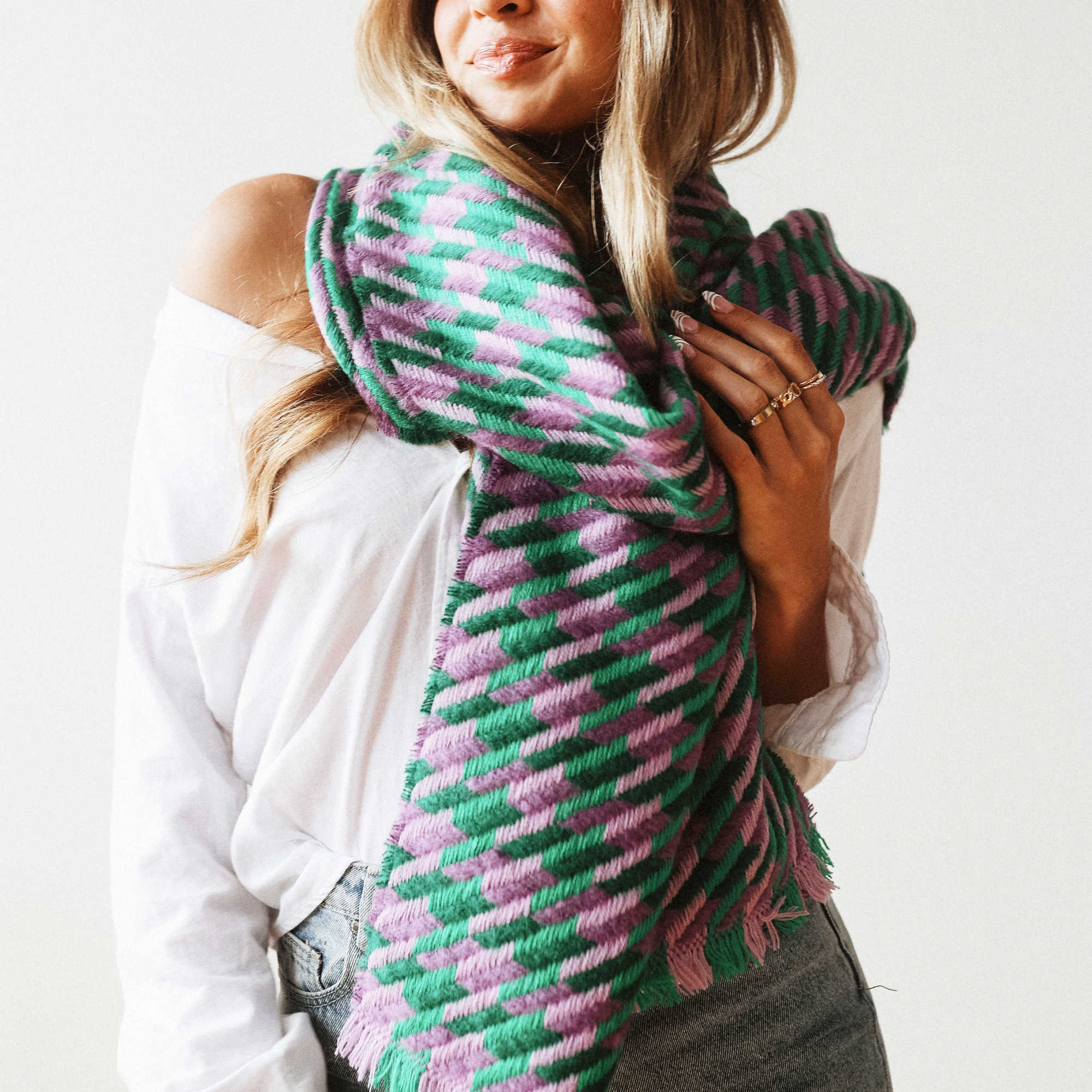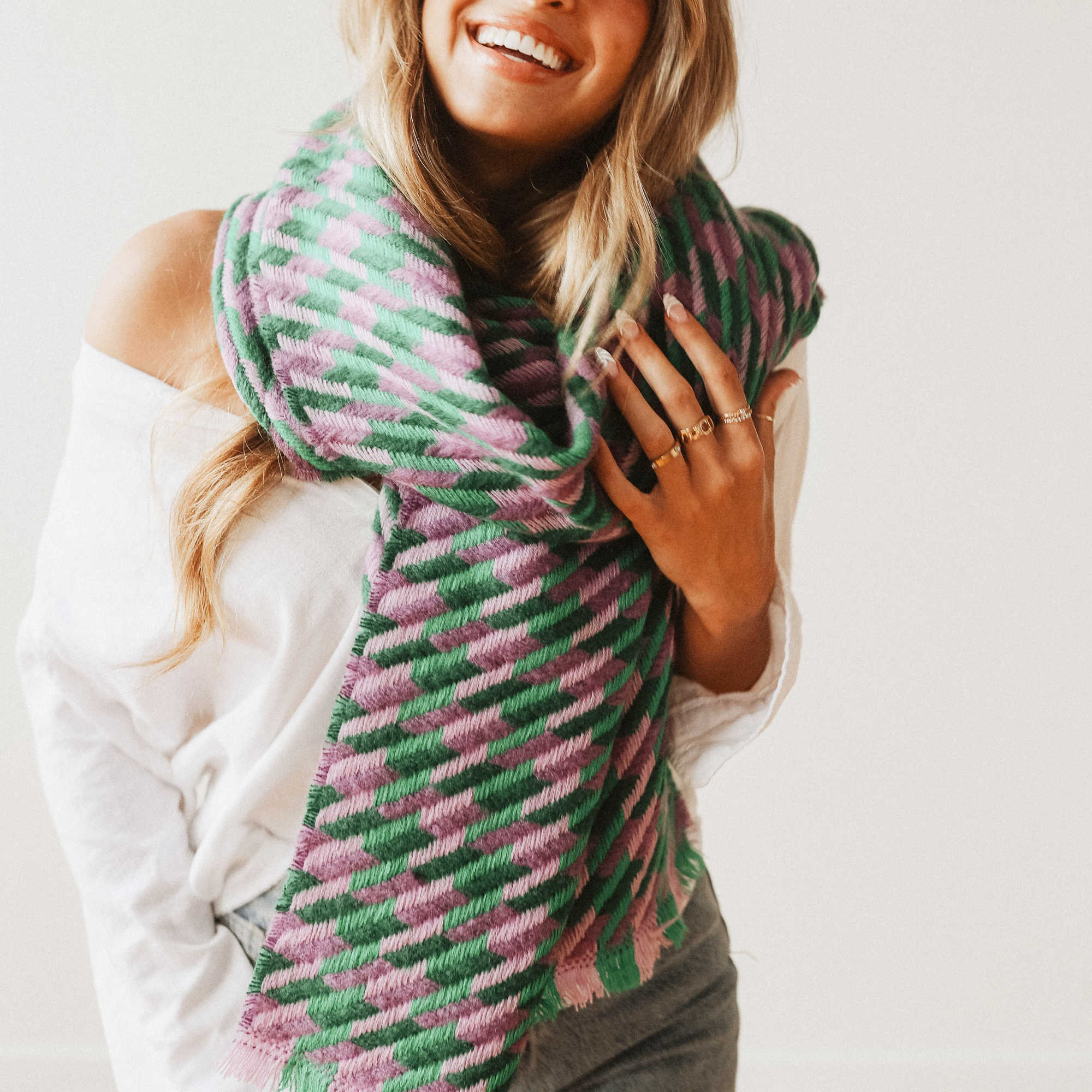 The Cold Morning Houndstooth Scarf is a cozy, on-trend scarf that will complete your outfit, keeping you both stylish and warm and comes in 3 colors. We LOVE the detail on this scarf and the texture it brings to your outfit.