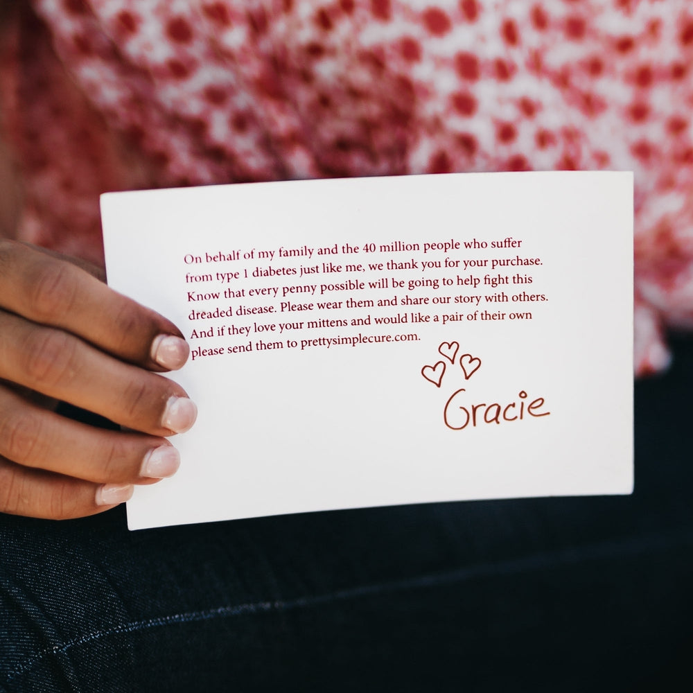 Our CURE Mittens are designed in crazy colors to start a conversation around type 1 diabetes and raise necessary dollars to help fund research to find a cure. We donate every penny possible from the sales of these mittens back to the type 1 diabetes community. The mittens also come in a reusable canister that can be used as a piggy bank. We hope you will continue collecting your spare change as an ongoing donation to help find a cure for type 1 diabetes or share it with someone else in need. Diabetes sucks. It's time to find a CURE. One pair of mittens at a time.