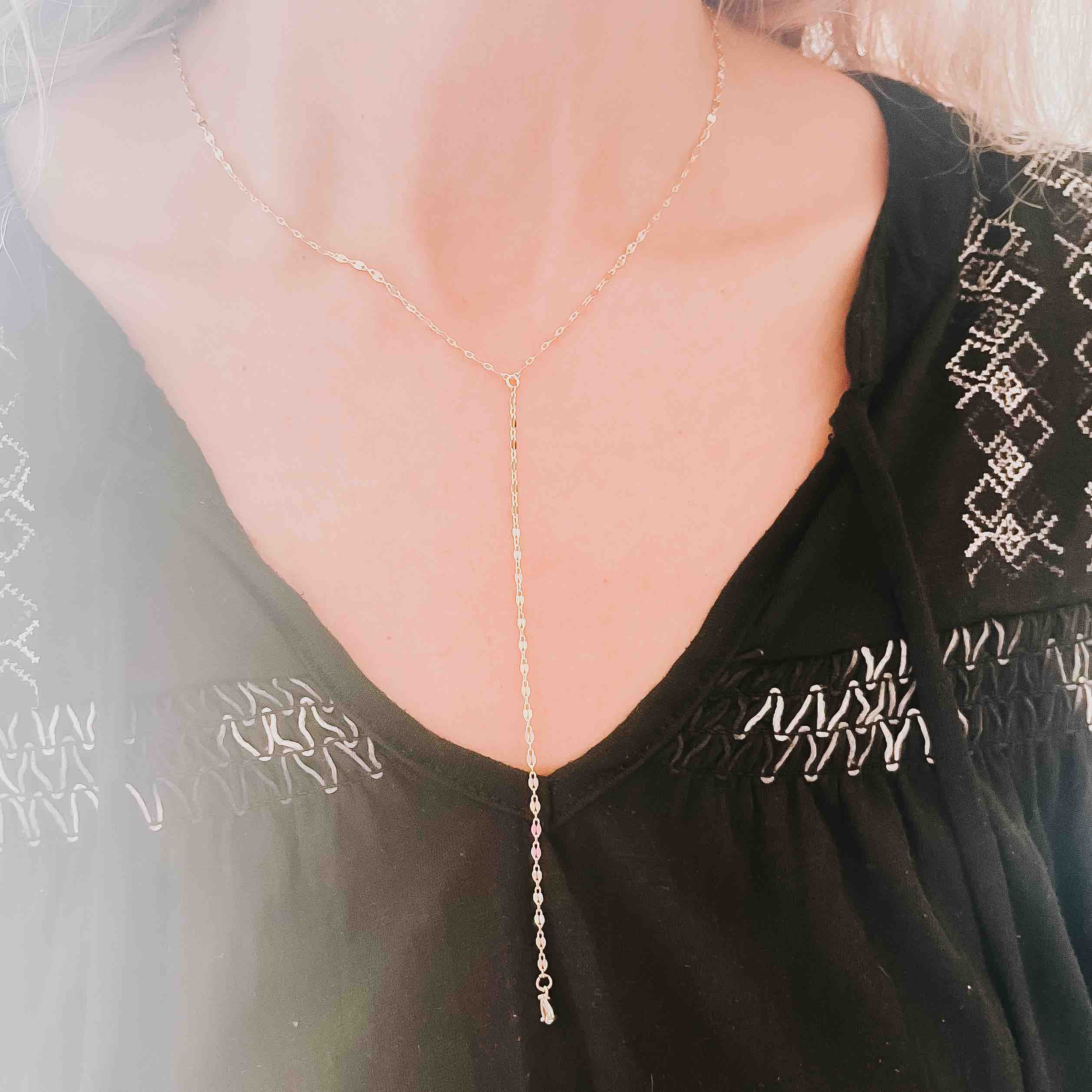Dainty Diamond Gold Teardrop Y Necklace