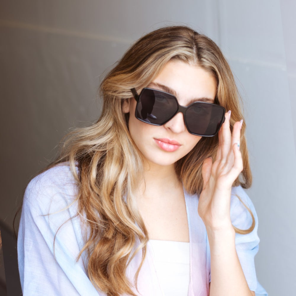 Hanna Hexagon Frame Sunglasses feature a boujee oversized frame designed for double-takes. Available in solid black, gradient shaded light pink, or tortoise. Throw these shades in your bag for the perfect face-covering vacation or summer accessory.