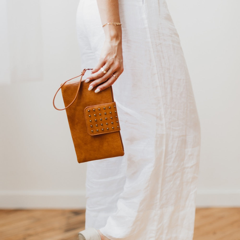 The best outfit completer is finally here - Our Riviera Maya Rivet Clutch! This clutch bag has a sleek silhouette that is complimented by gold rivets on the front flap of the bag. But this bag isn't just about looks; it's designed to hold all your essentials without compromising on style. The compact yet surprisingly spacious interior can accommodate your phone, keys, makeup must-haves, and more!