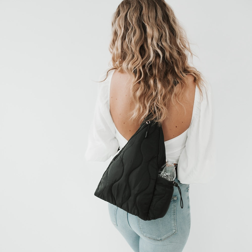 Get the best of both worlds with the Striding Through Philly Puffer Sling Bag & Backpack! Available in bubblegum pink, teal, and black, this beautiful athleisure and trendy bag features an ogee pattern in nylon puffer material. Wear it as a sling bag across either the front or back of your body, or style it as a backpack! The Philly Puffer includes adjustable straps, a convenient water bottle pocket, and an interior zipper pocket. Perfect for striding through the city in style!