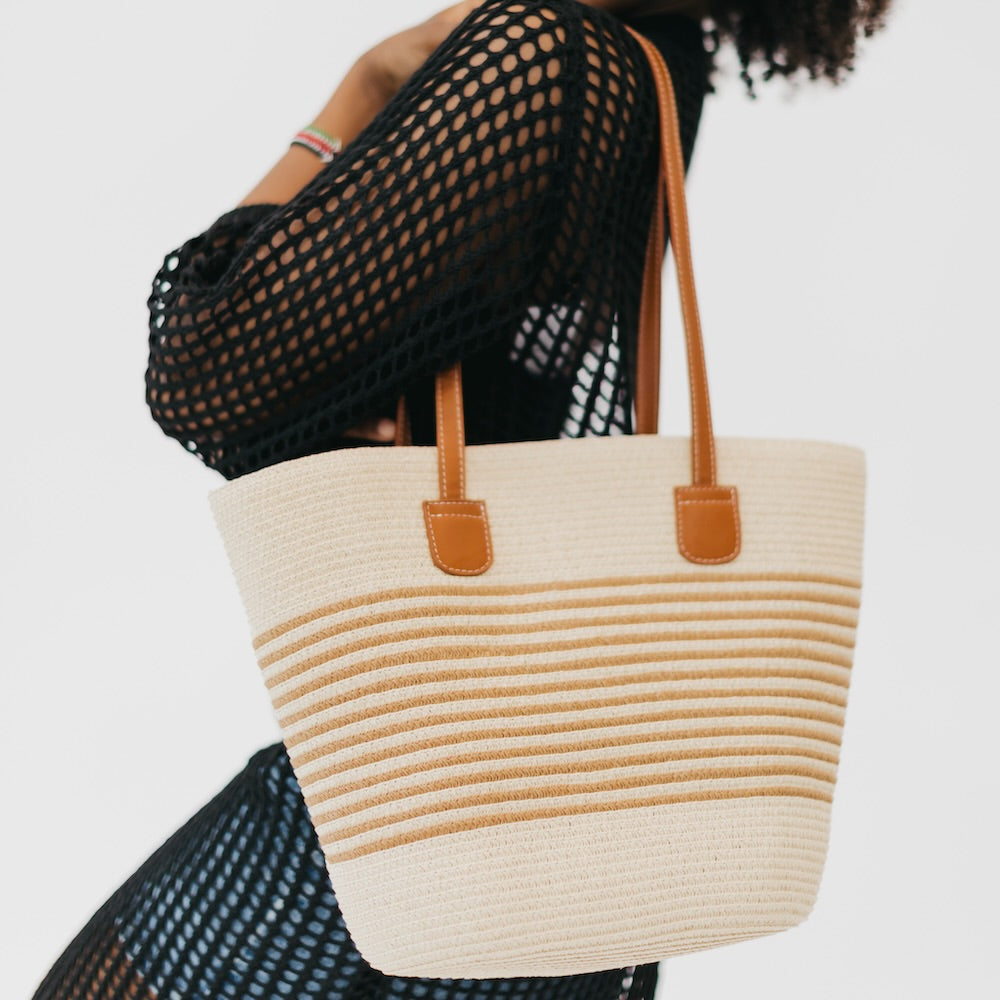 Meet our new Tahiti Tote Straw Beach Bag! This style is perfect for either a day at the beach or just as an accessory for your summer outfit. It includes a zipper closure, an interior pocket, and it has a beautiful a tan interior fabric lining. This bag is lightweight with sturdy and durable handles, and is able to hold a lot of your necessities!