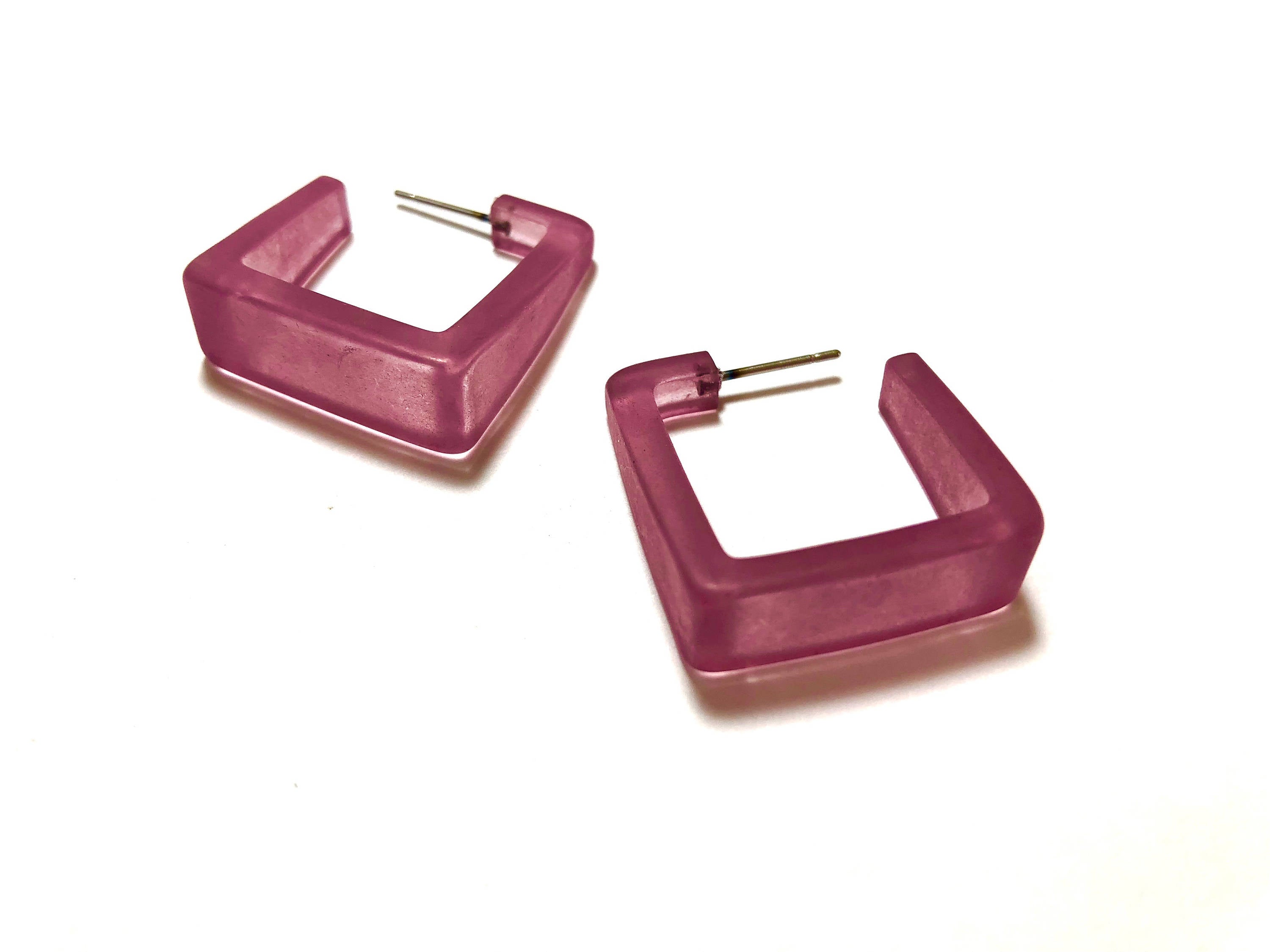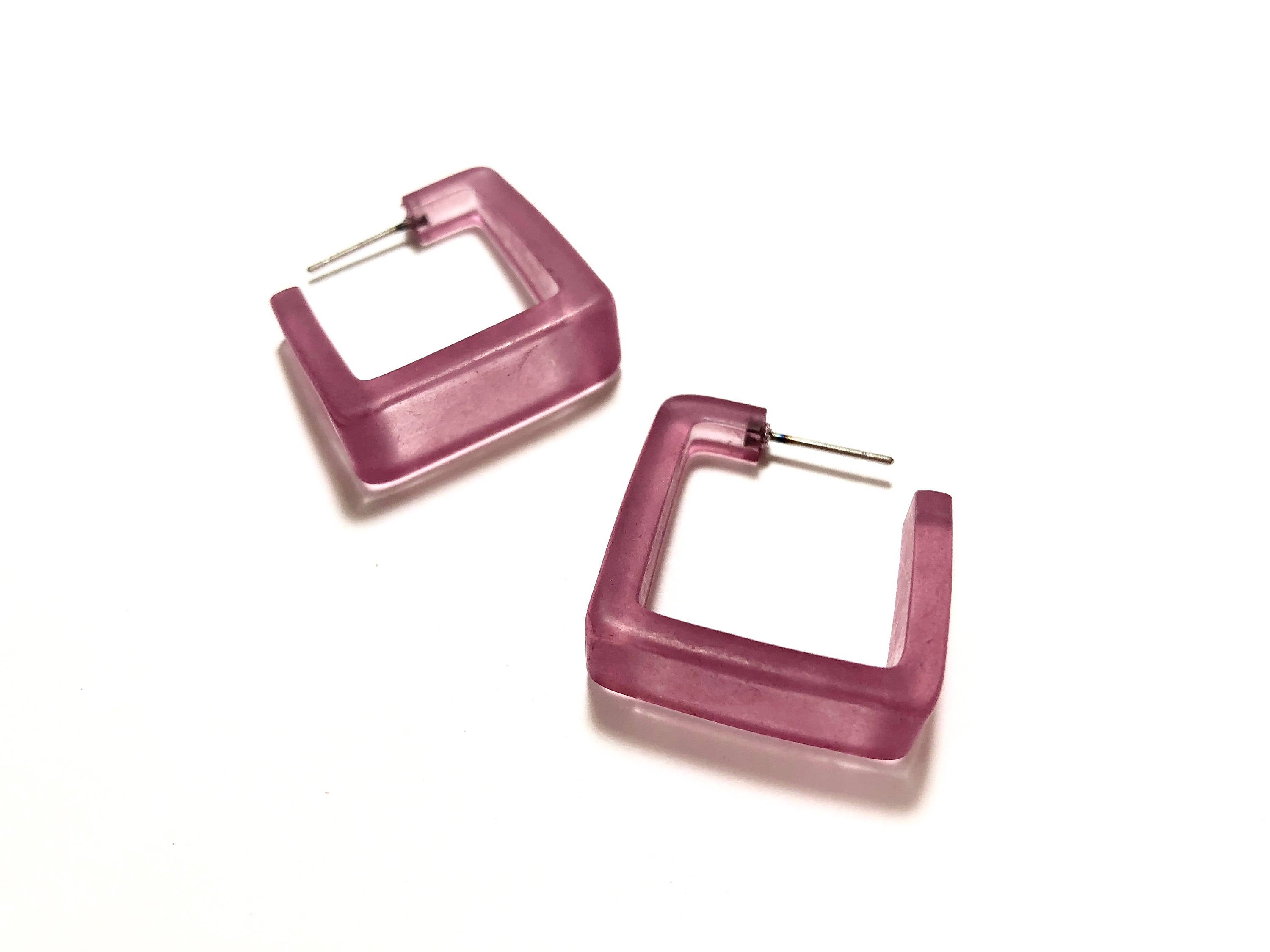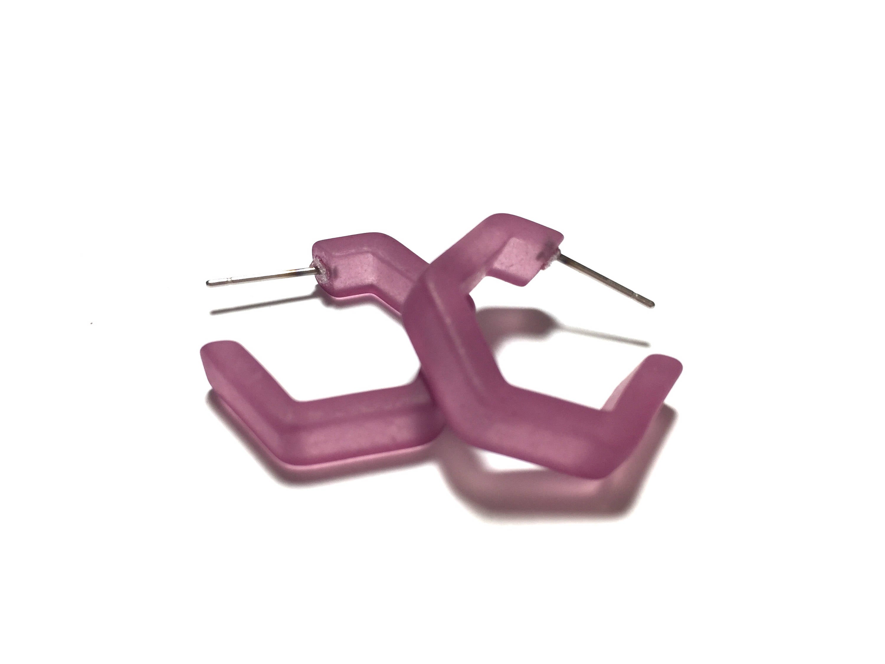 Amethyst Frosted Cubist Hoop Earrings