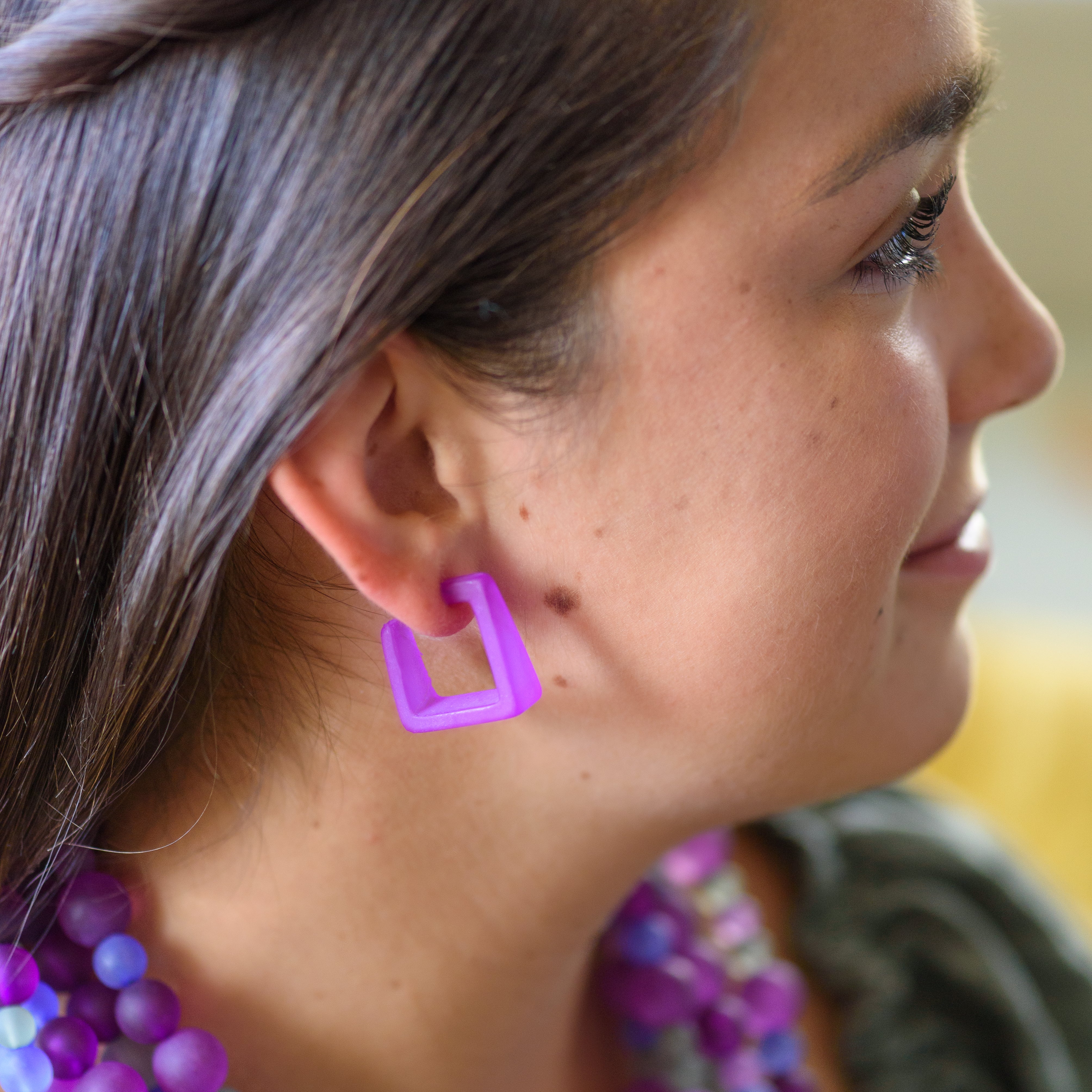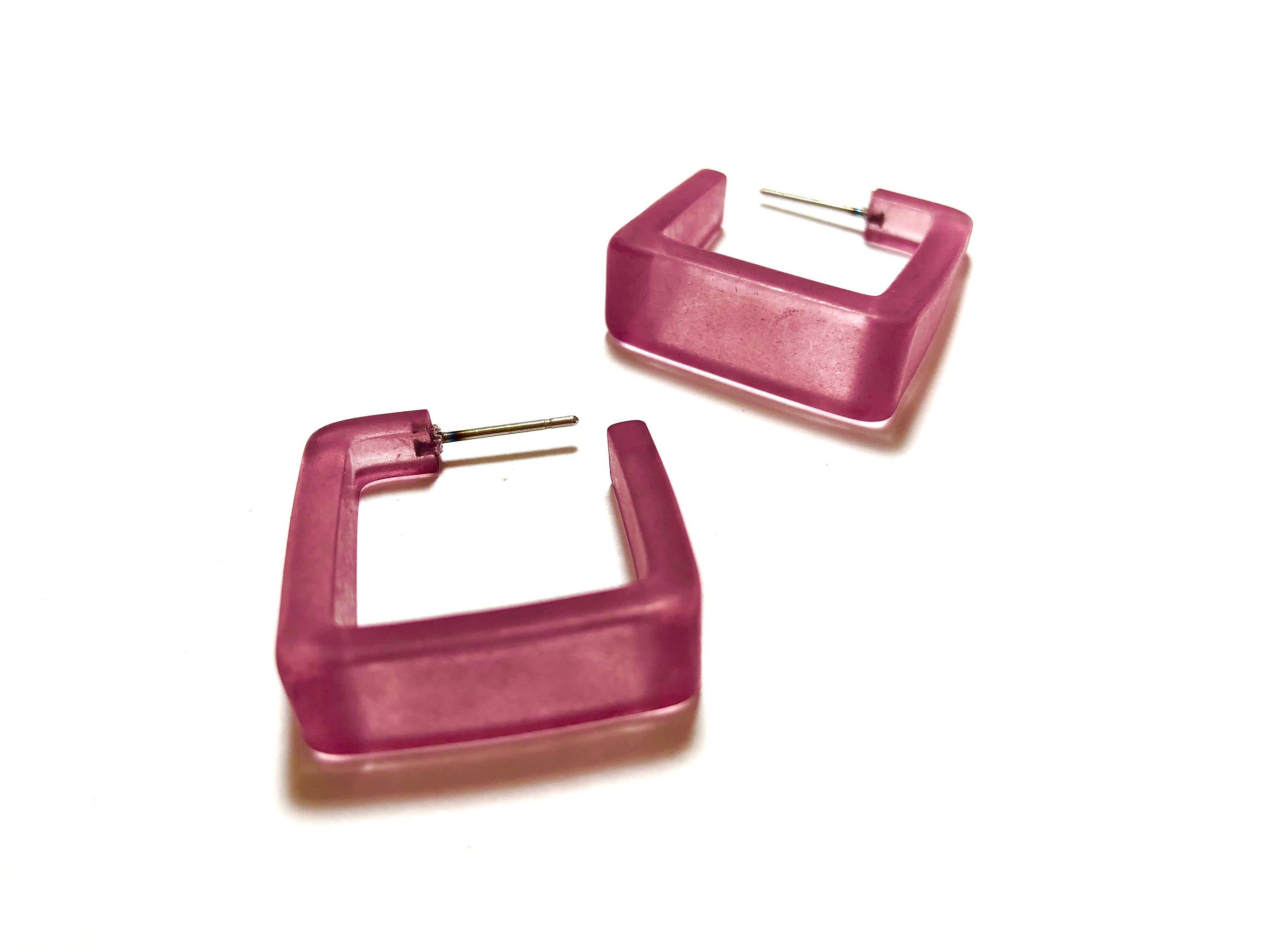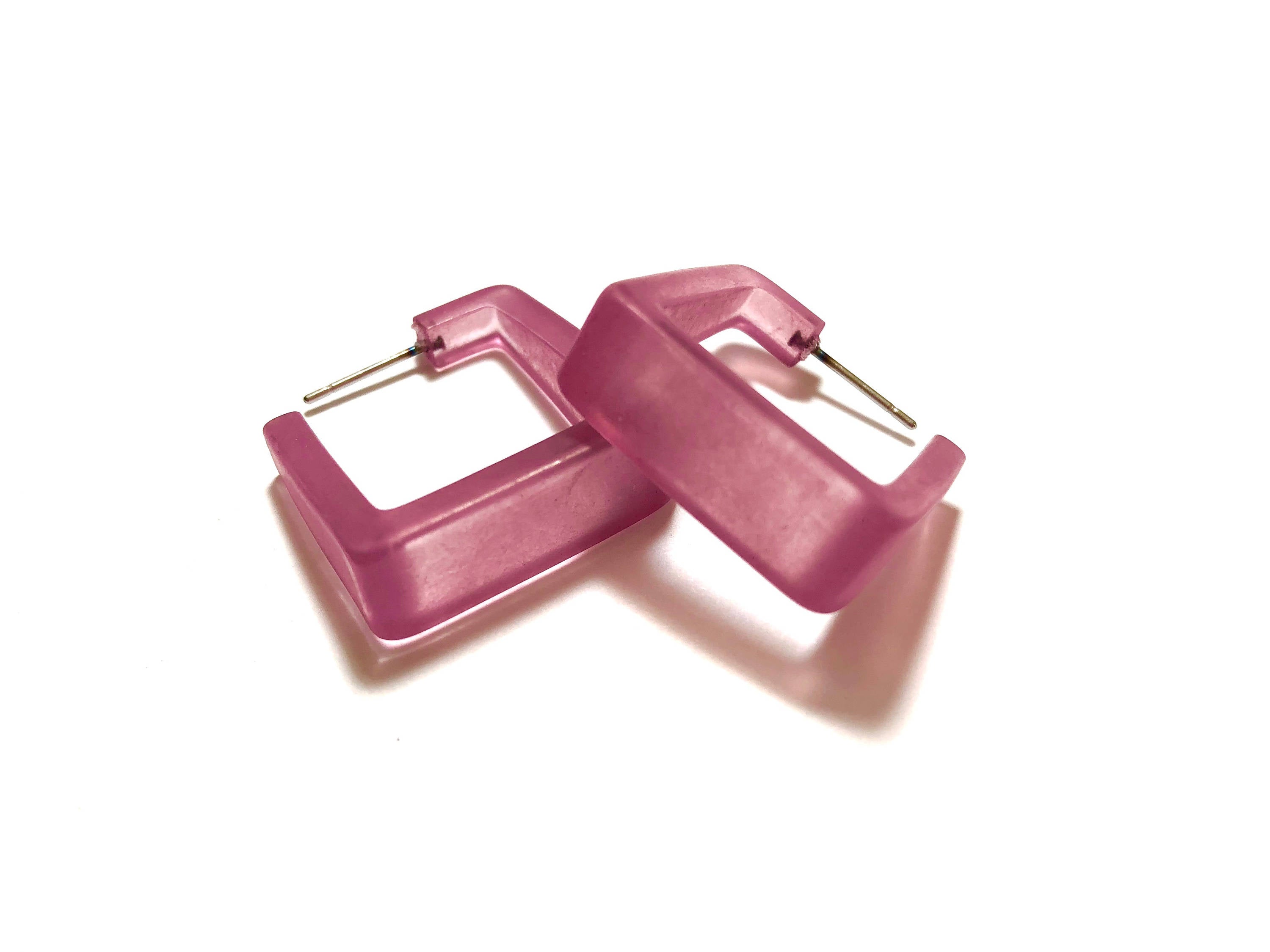 Amethyst Frosted Cubist Hoop Earrings