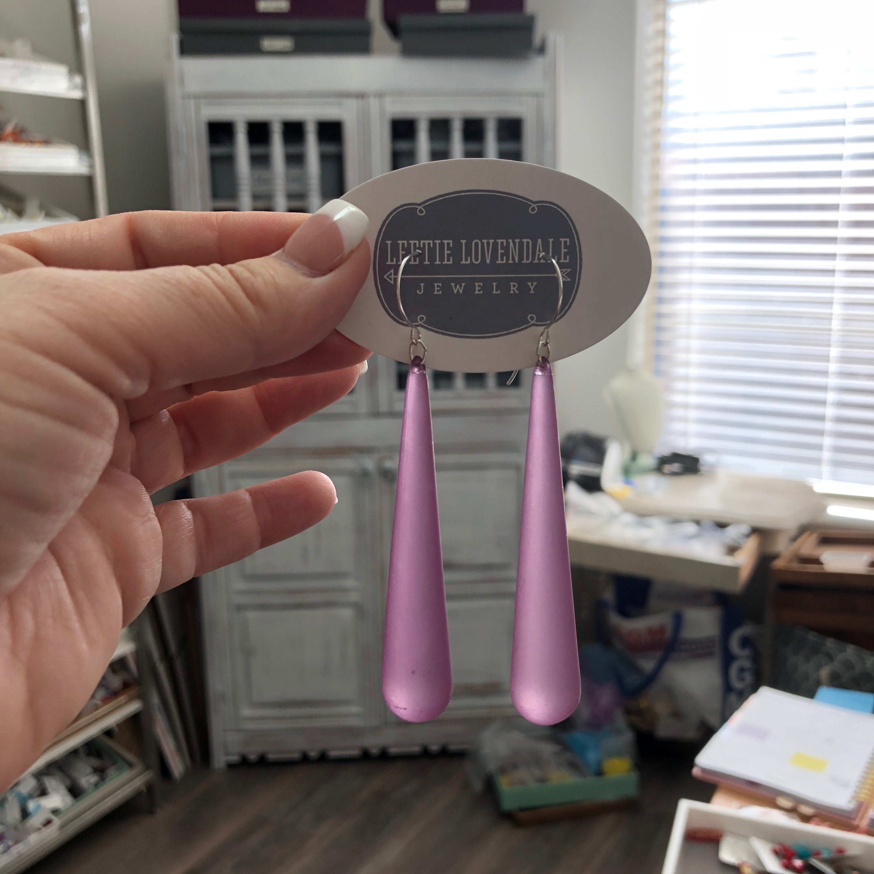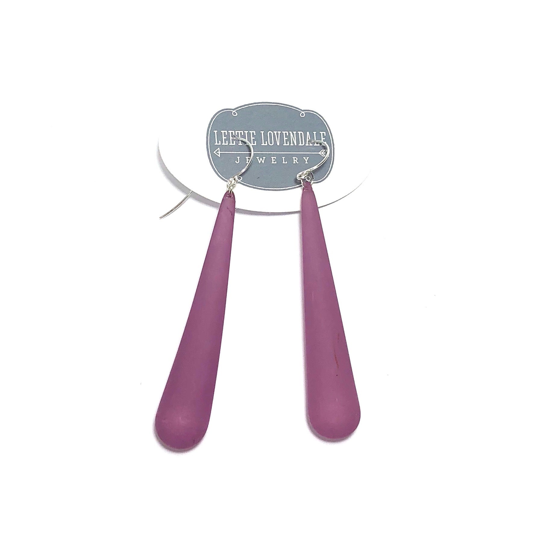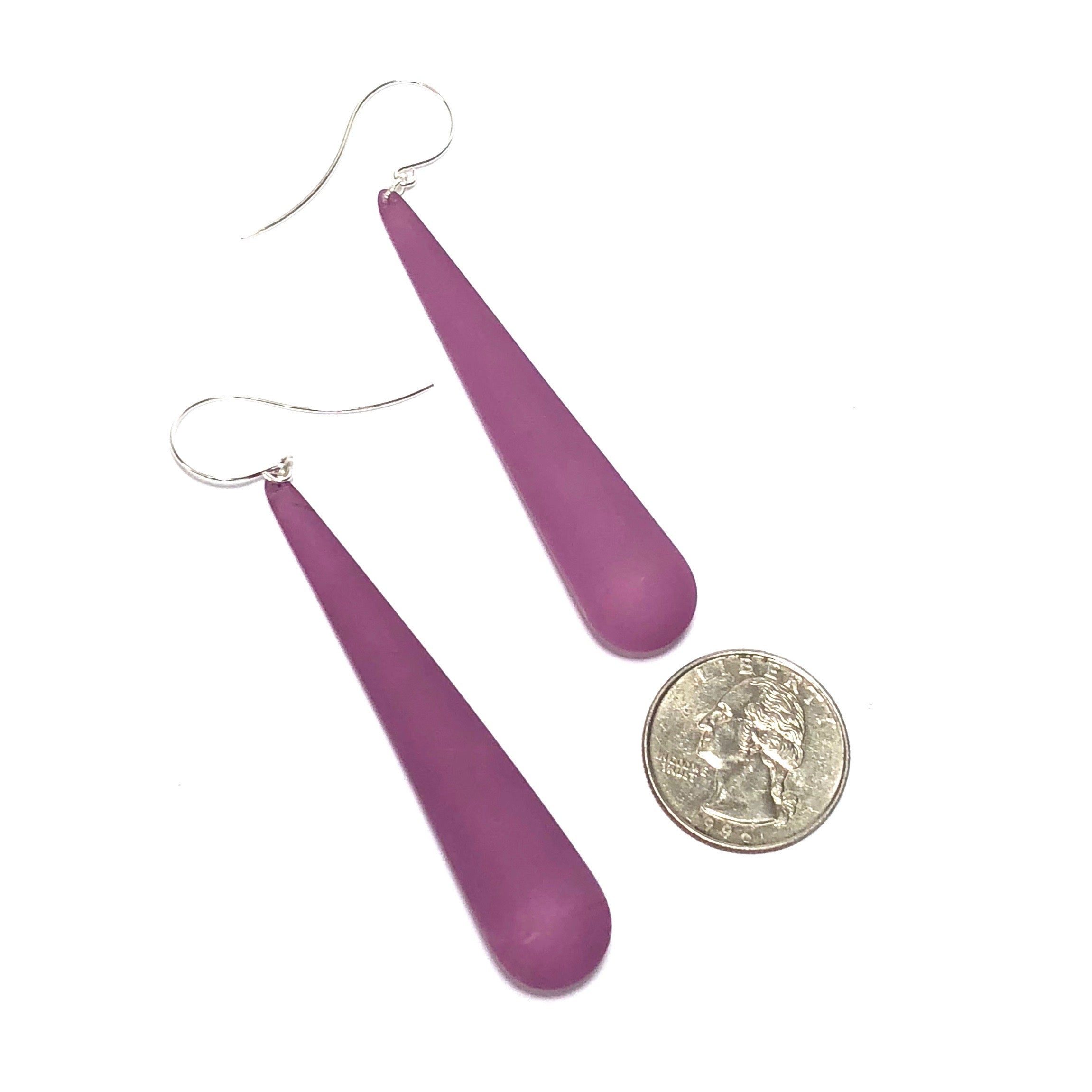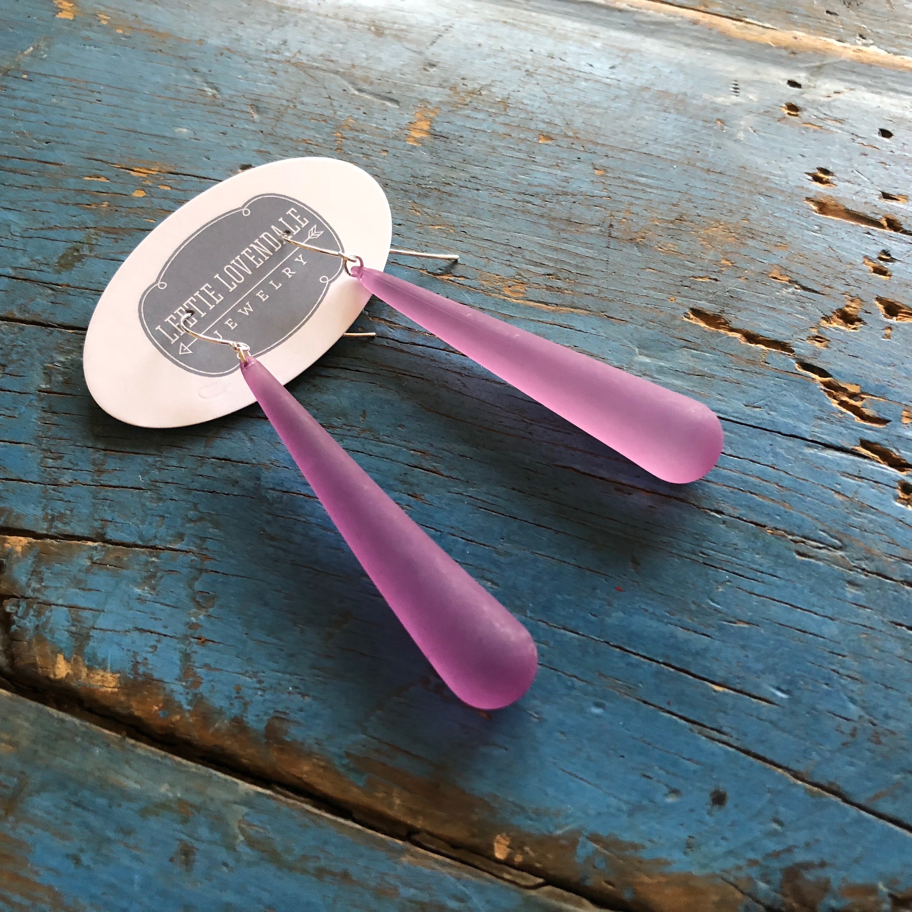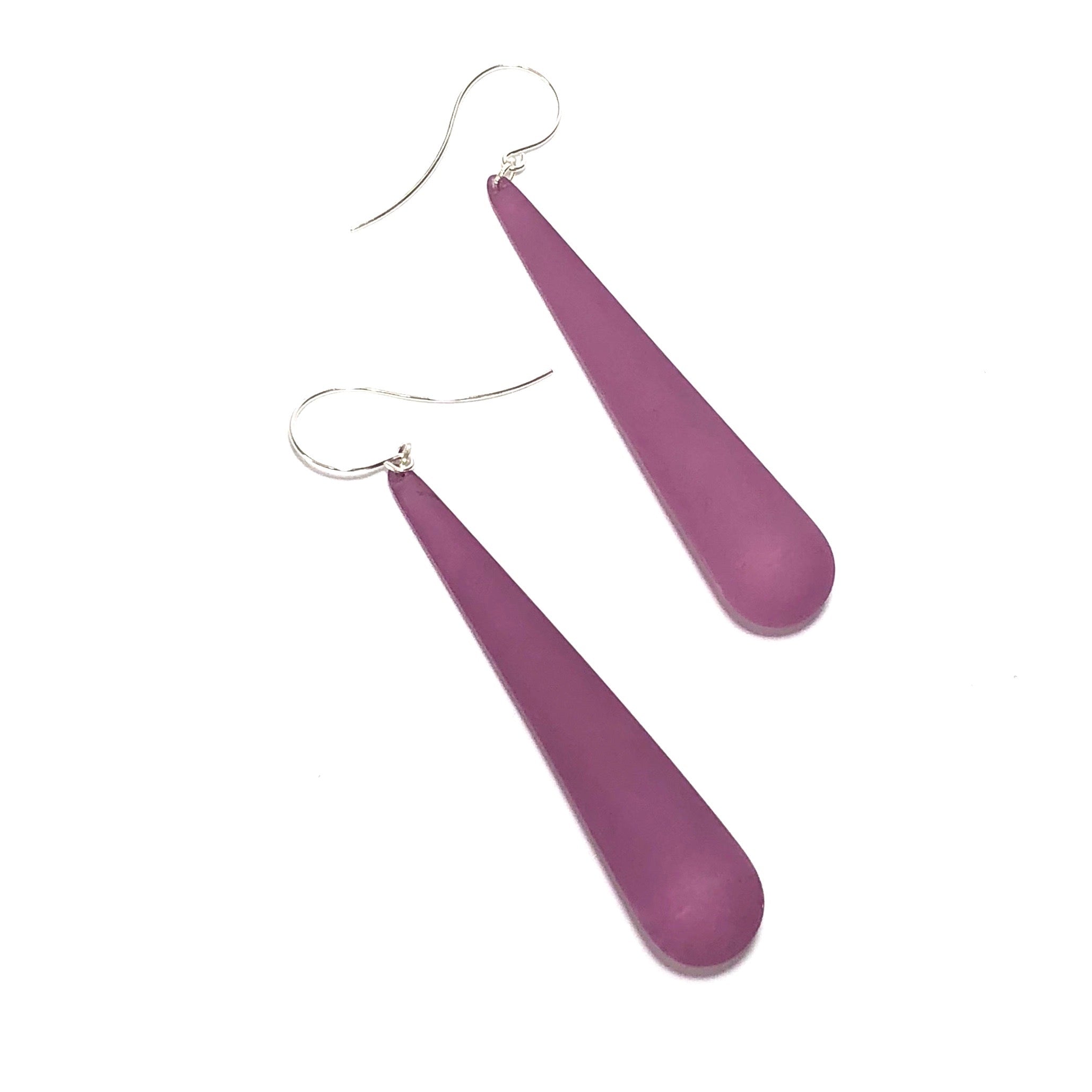 Amethyst Frosted Long Teardrop lucite statement earrings