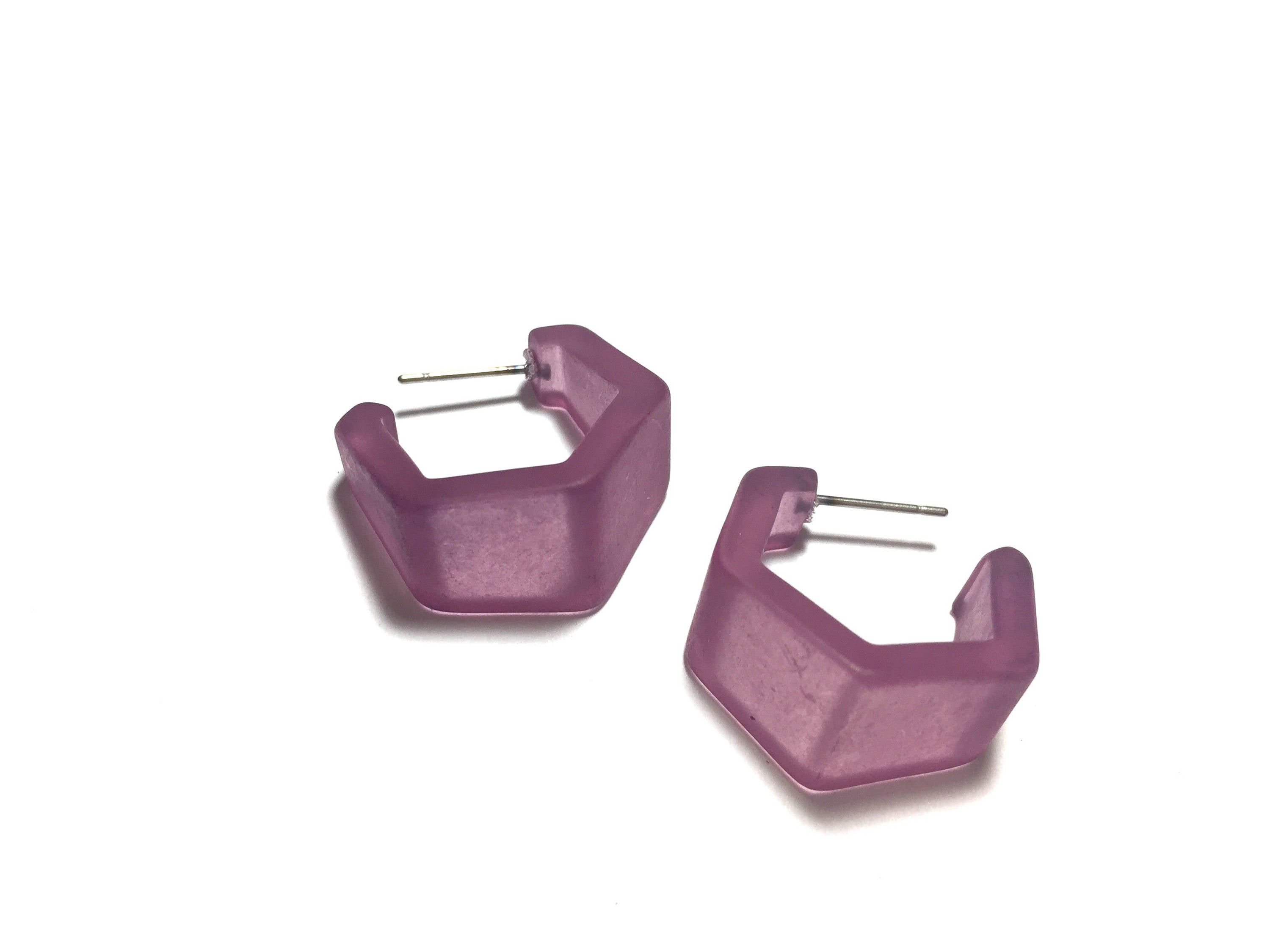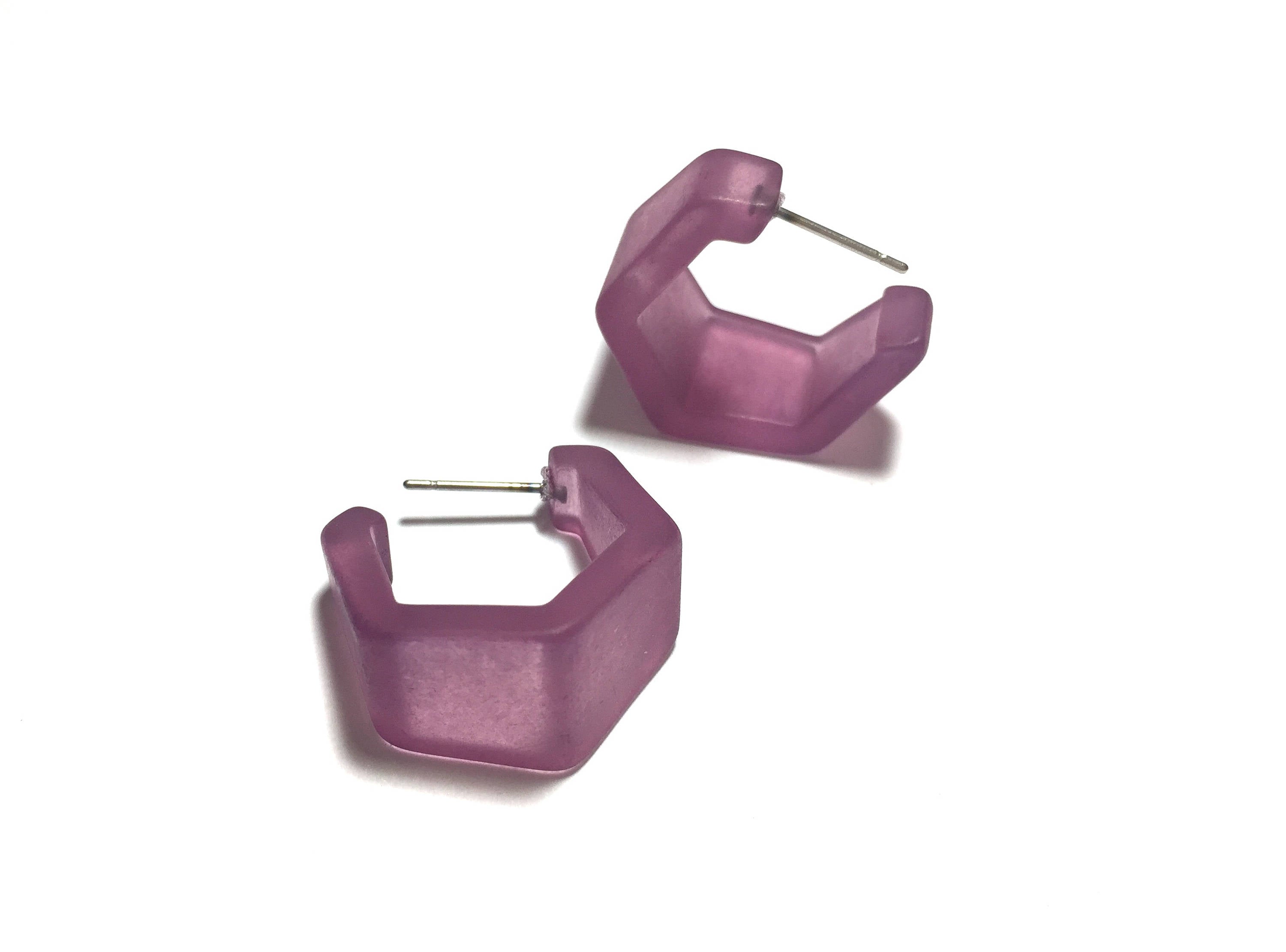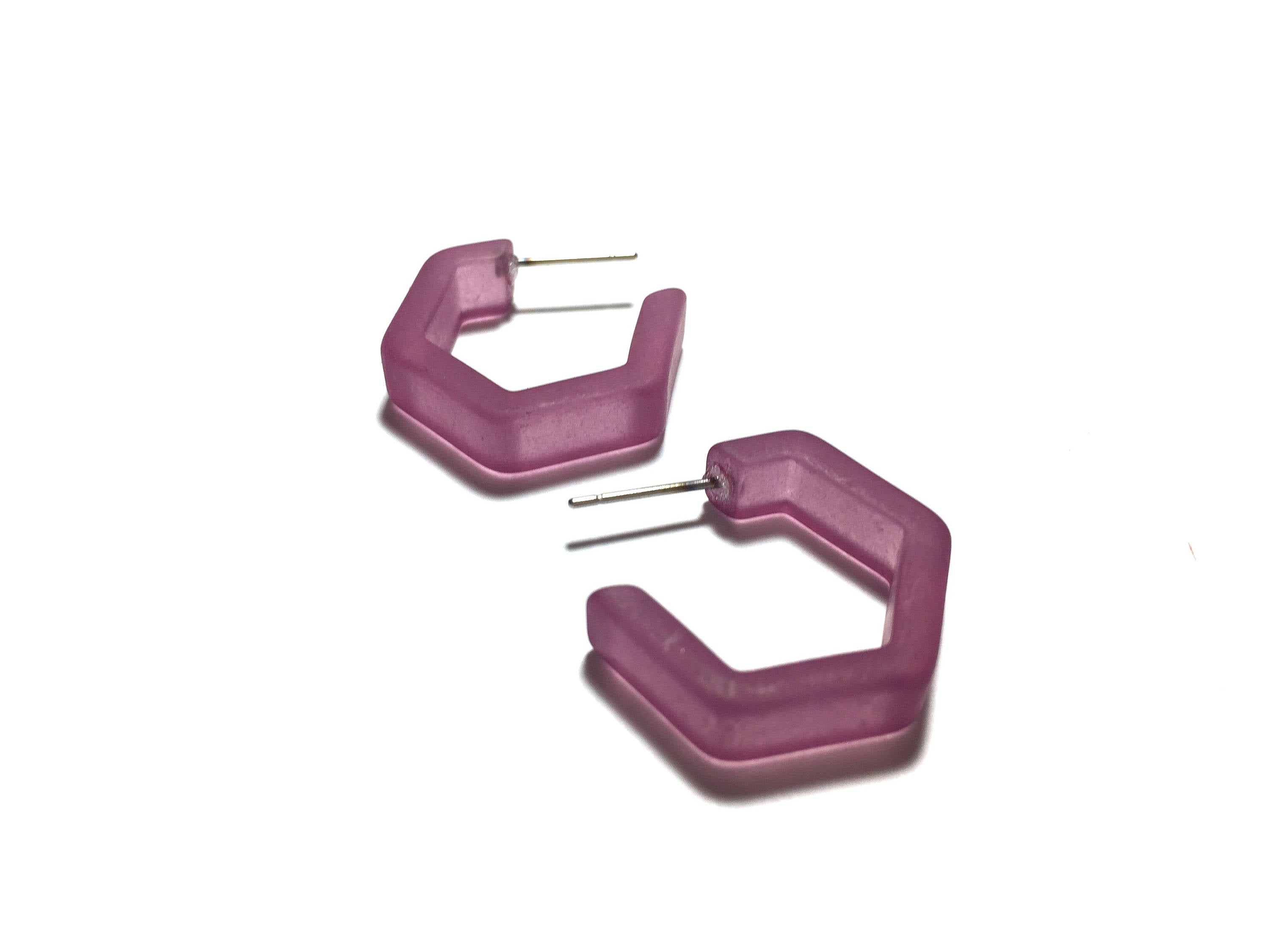 Amethyst Frosted Honeycomb Hex Hoop Earrings