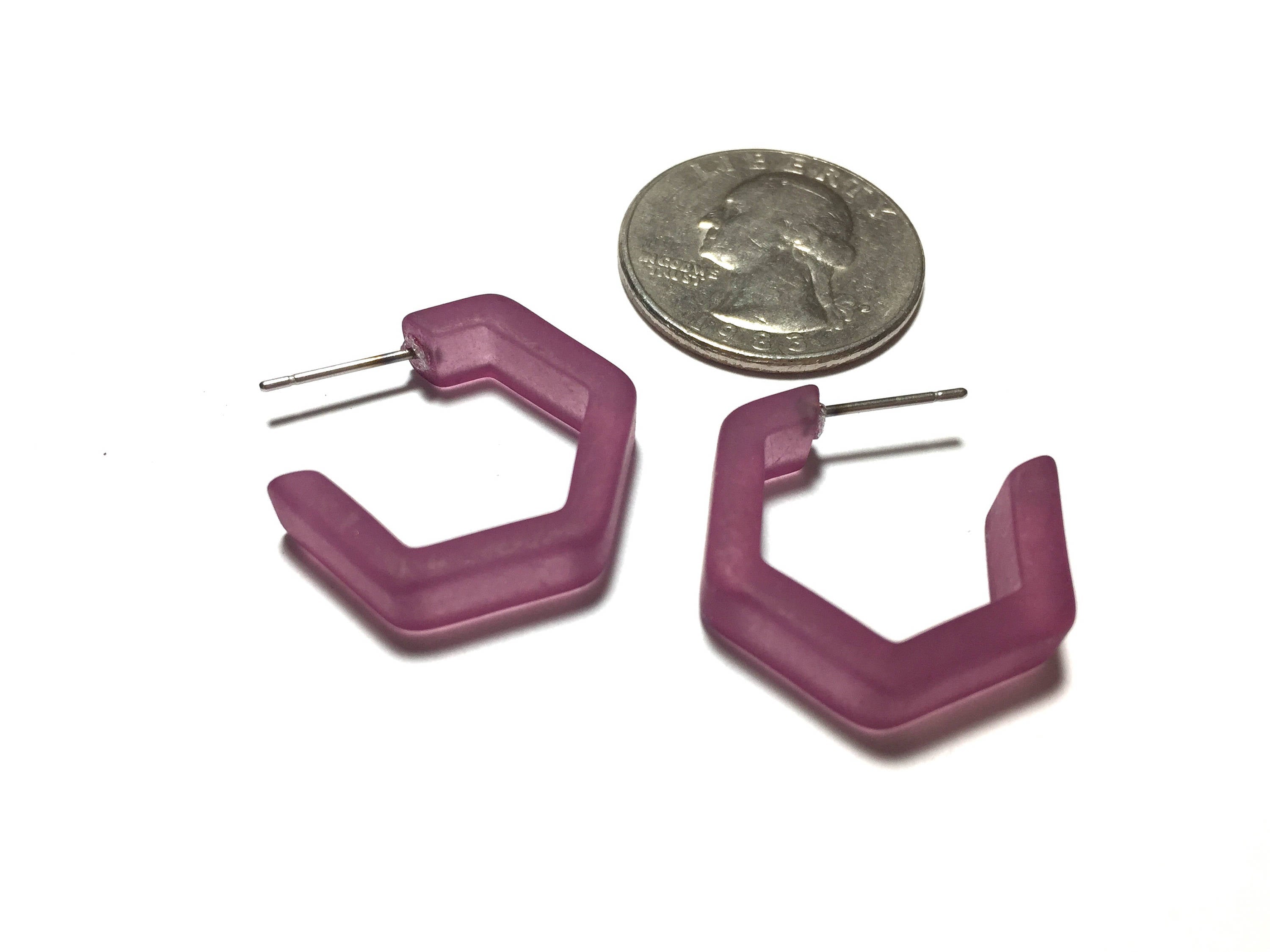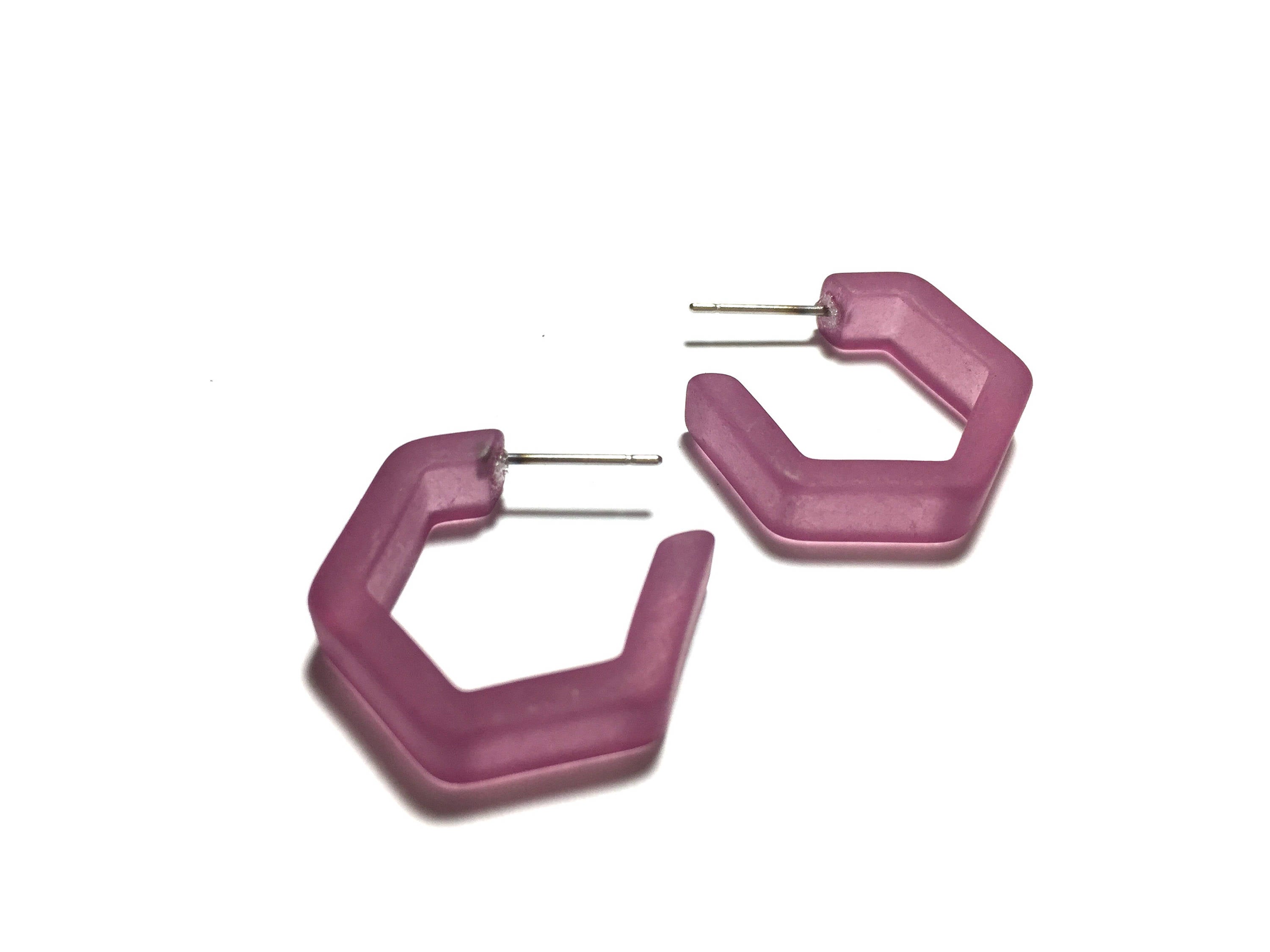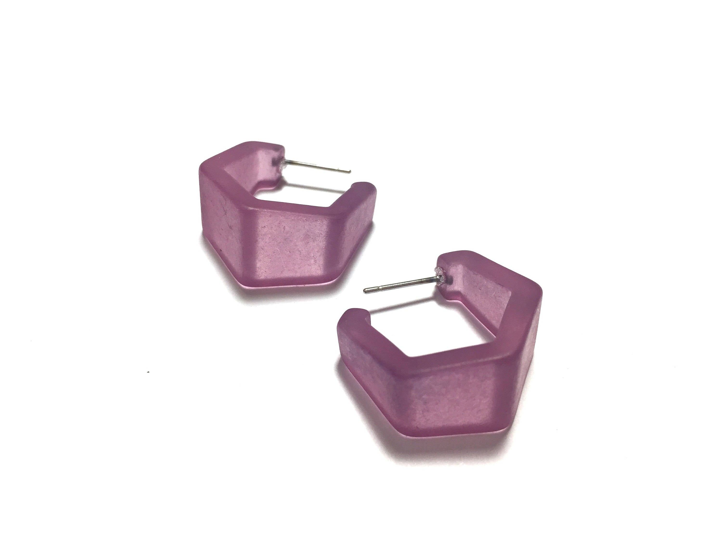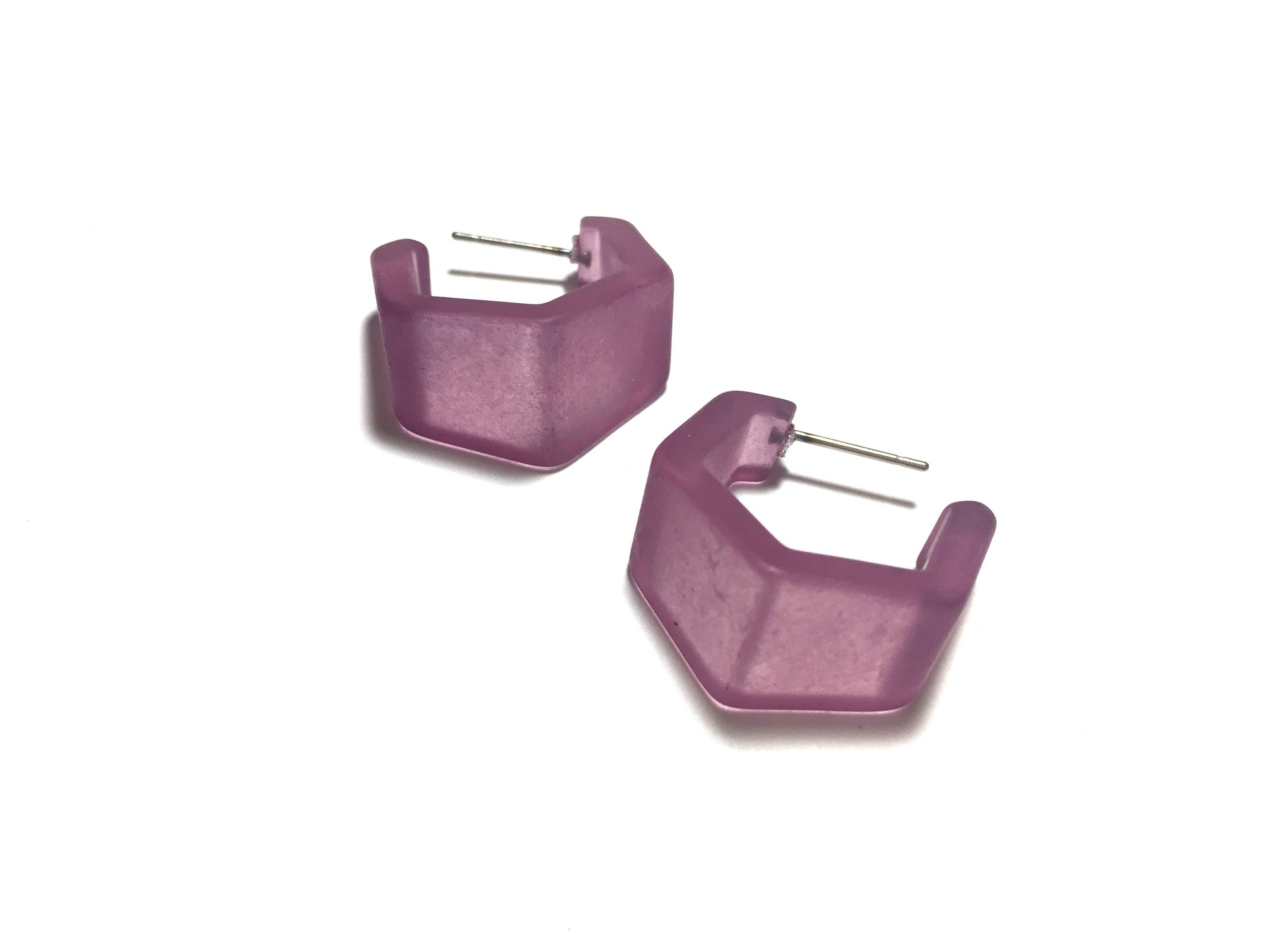 Amethyst Frosted Honeycomb Hex Hoop Earrings
