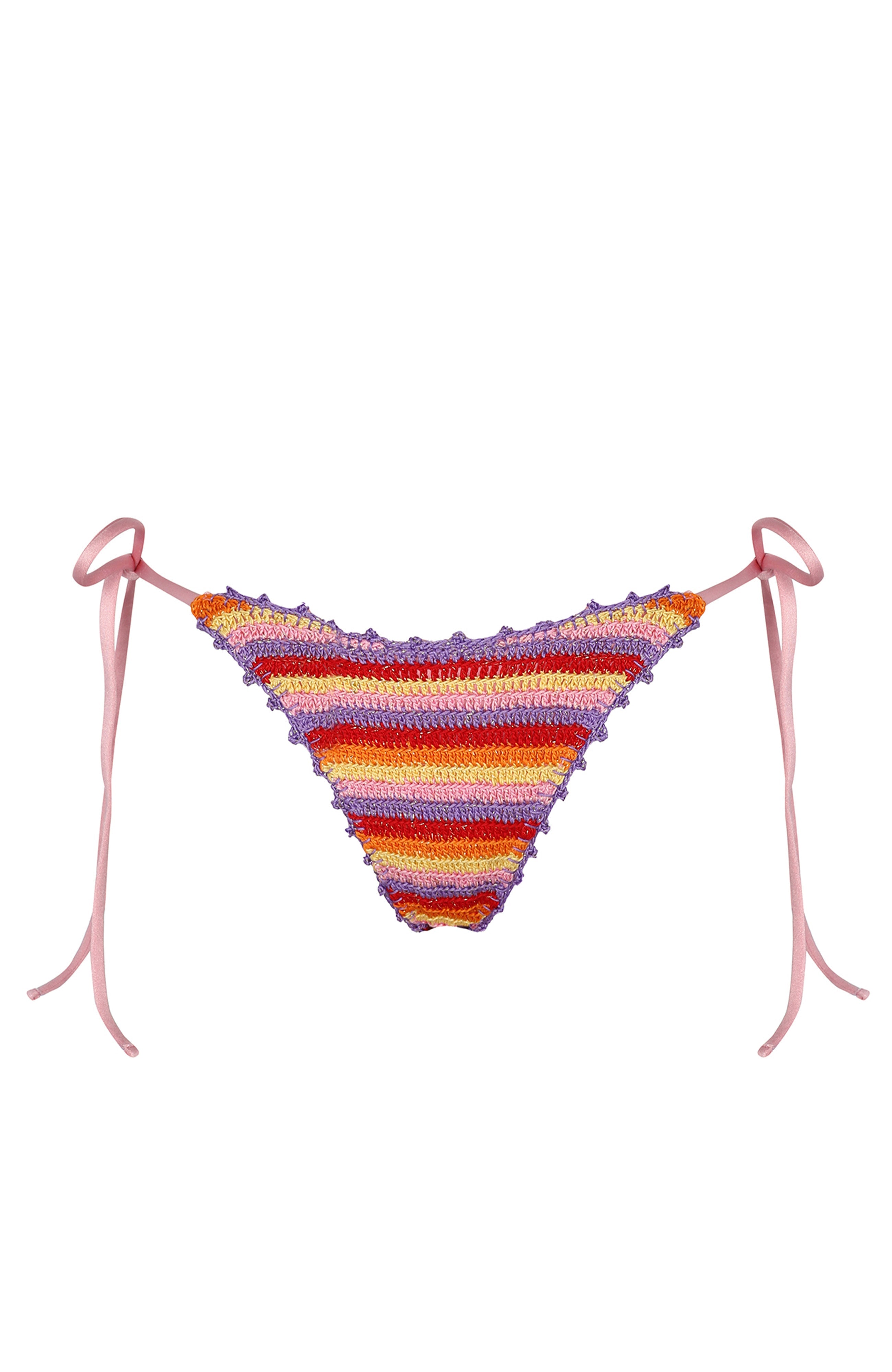 Lucy Multicolor is a unique bikini with which you will stand out! Made of crochet and with adjustable straps on the top and bottom. Produced in a sustainable factory and handmade by Peruvian artisans.