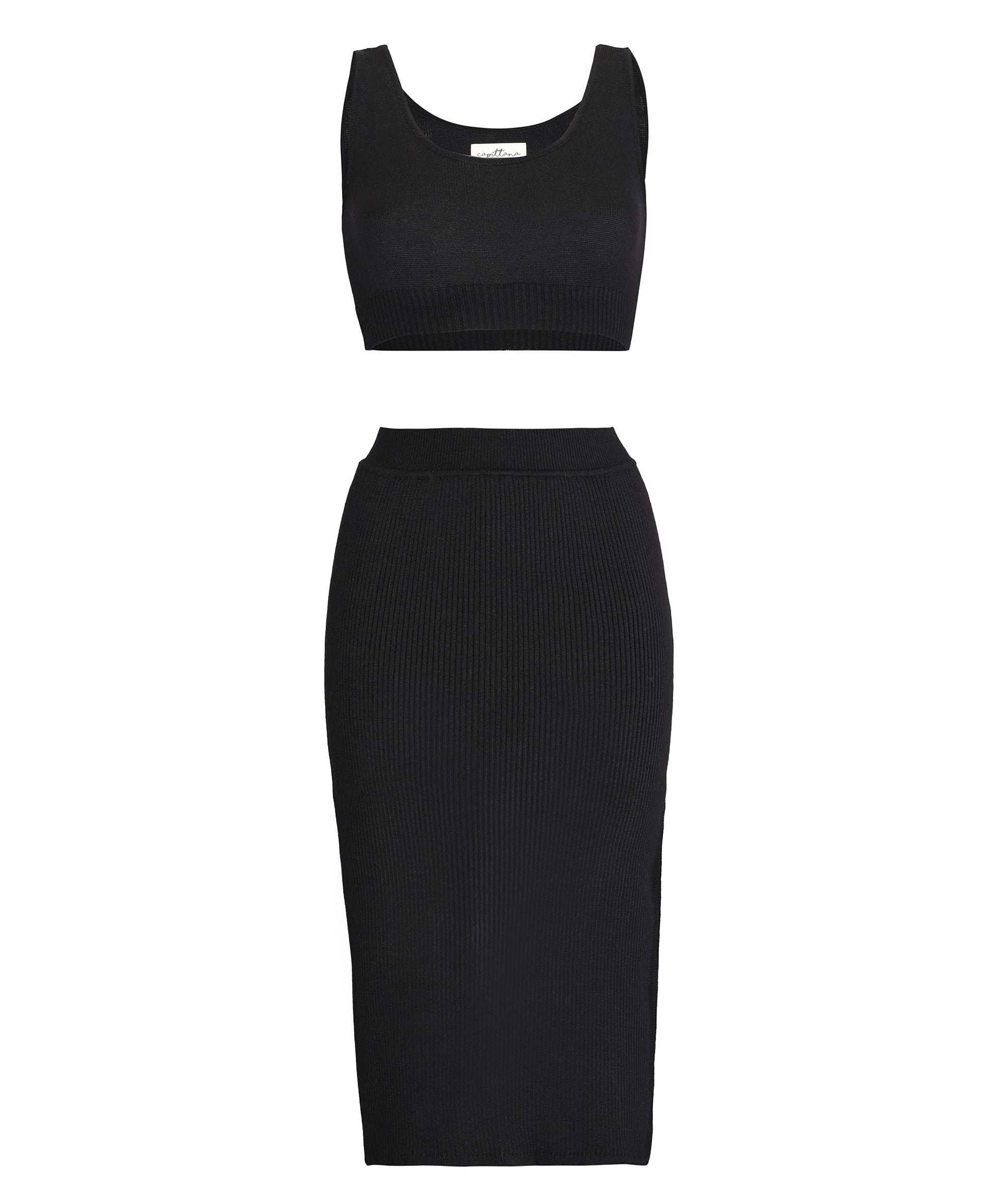 We love a set and we know you'll love it too! The Lucero Set in black includes a rib skirt with an opening on the side and a rib top. With this gorgeous set you'll have two pieces to use together or combine with what you already have in your closet. Produced in a sustainable factory and handmade by Peruvian artisans.