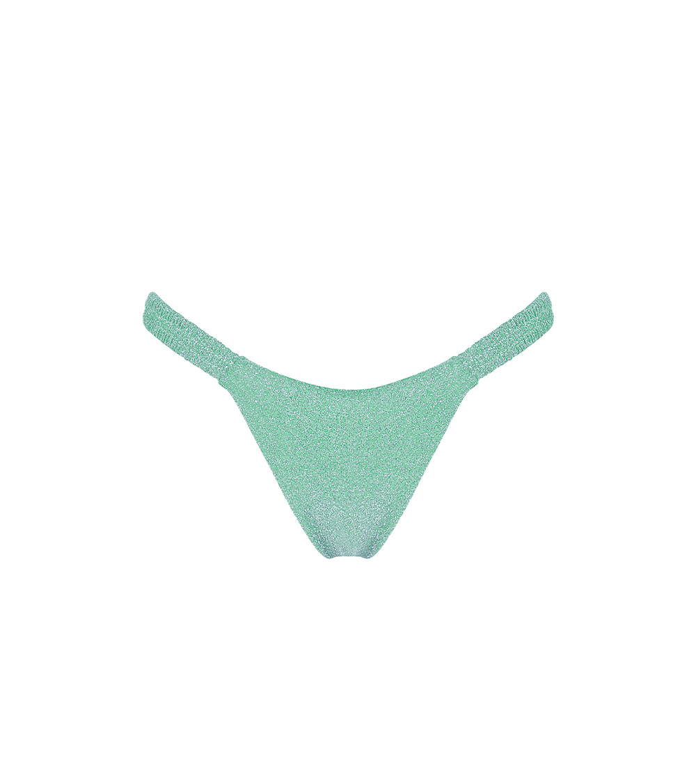 The bikini you needed! Vicky Light Green features a Brazilian coverage bottom and made from the perfect shiny fabric. Produced in a sustainable factory and handmade by Peruvian artisans.