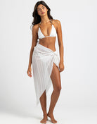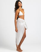 The Anaya Pareo in sheer white is an effortlessly elegant cover-up, featuring crisp white contrast stripes that add a touch of modern sophistication. The lightweight fabric drapes beautifully, providing an airy, breezy feel, while the ties on one side allow for adjustable coverage and a customizable fit. Perfect for layering over swimwear or pairing with resort wear, the Anaya Pareo combines simplicity and style, making it an essential piece for a chic, relaxed look by the beach or pool.