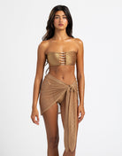 The Dudley Pareo is a stunning mesh cover-up featuring delicate lurex threads in a soft nude shade. The lightweight, sheer fabric offers a subtle shimmer, creating an elegant, almost ethereal look. Perfect for draping over swimwear, this pareo adds a touch of glamour while providing just the right amount of coverage. The versatile design allows for various styling options, making it an ideal accessory for both beach days and evening wear, exuding effortless sophistication with a modern, shimmering twist.