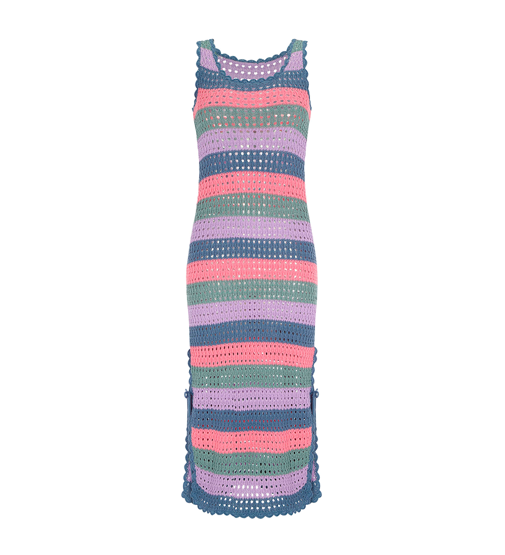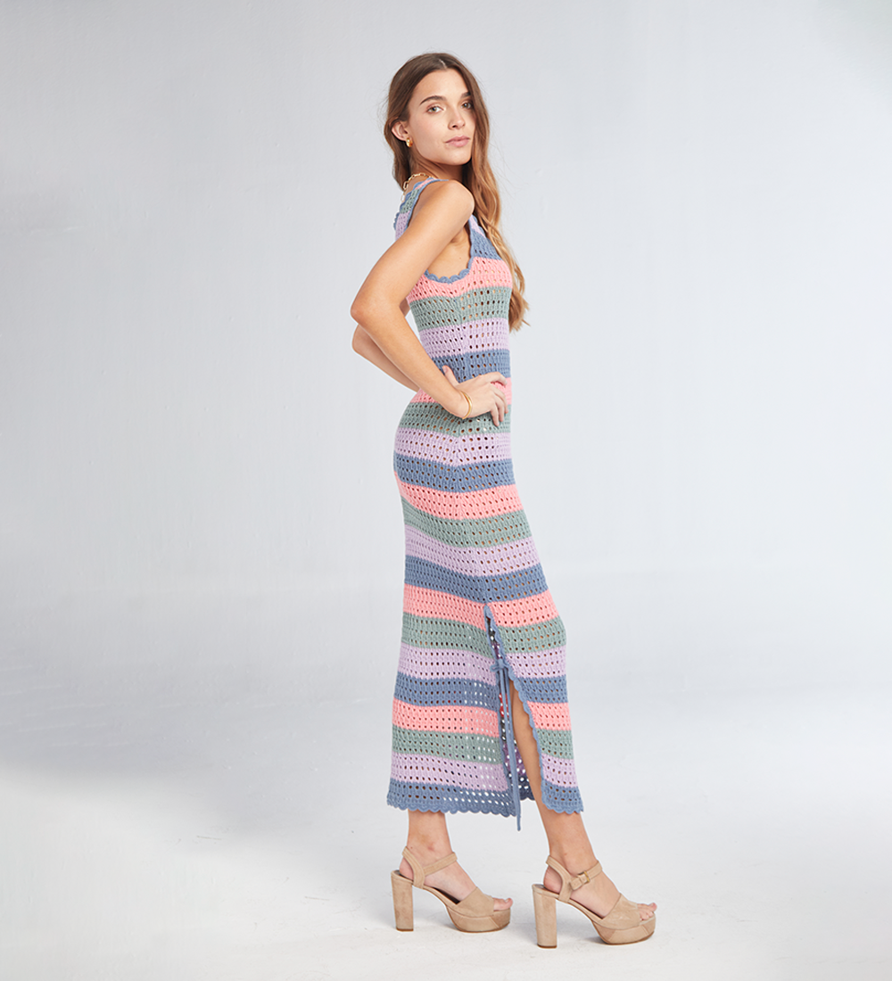 Long crochet dress, with opening and adjustable straps on both sides. Perfect for a sunset date on the beach! Produced in a sustainable factory and handmade by Peruvian artisans.