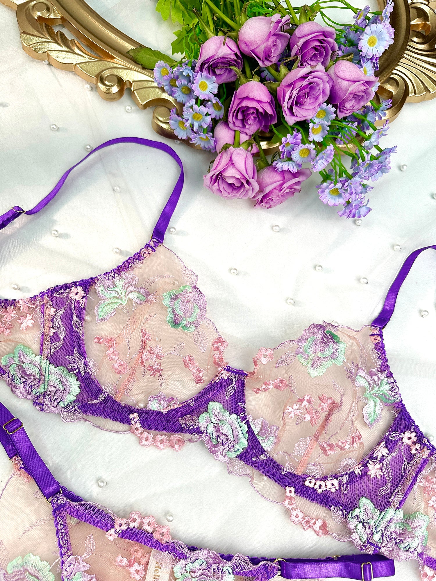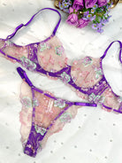 💜This Purple Petal Embroidered Lingerie Set combines elegance with allure, featuring a rich shade of purple adorned with intricate embroidery. Delicate petals dance along the edges, enhancing its romantic appeal. Designed to captivate, it blends luxurious comfort with exquisite craftsmanship, making it a statement piece for intimate moments.