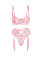 Pink Floral Embroidery Pearl Chain Lingerie Set