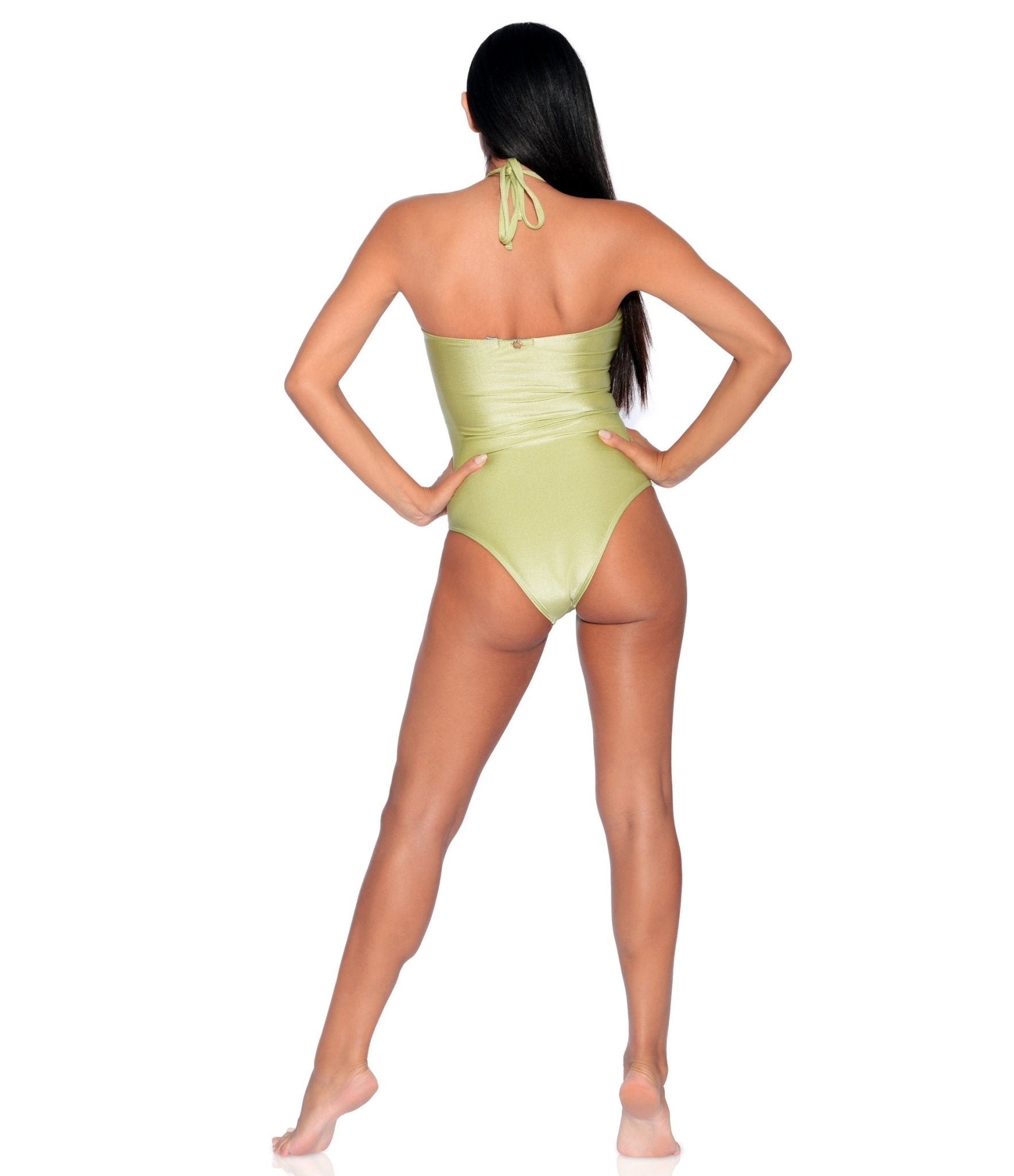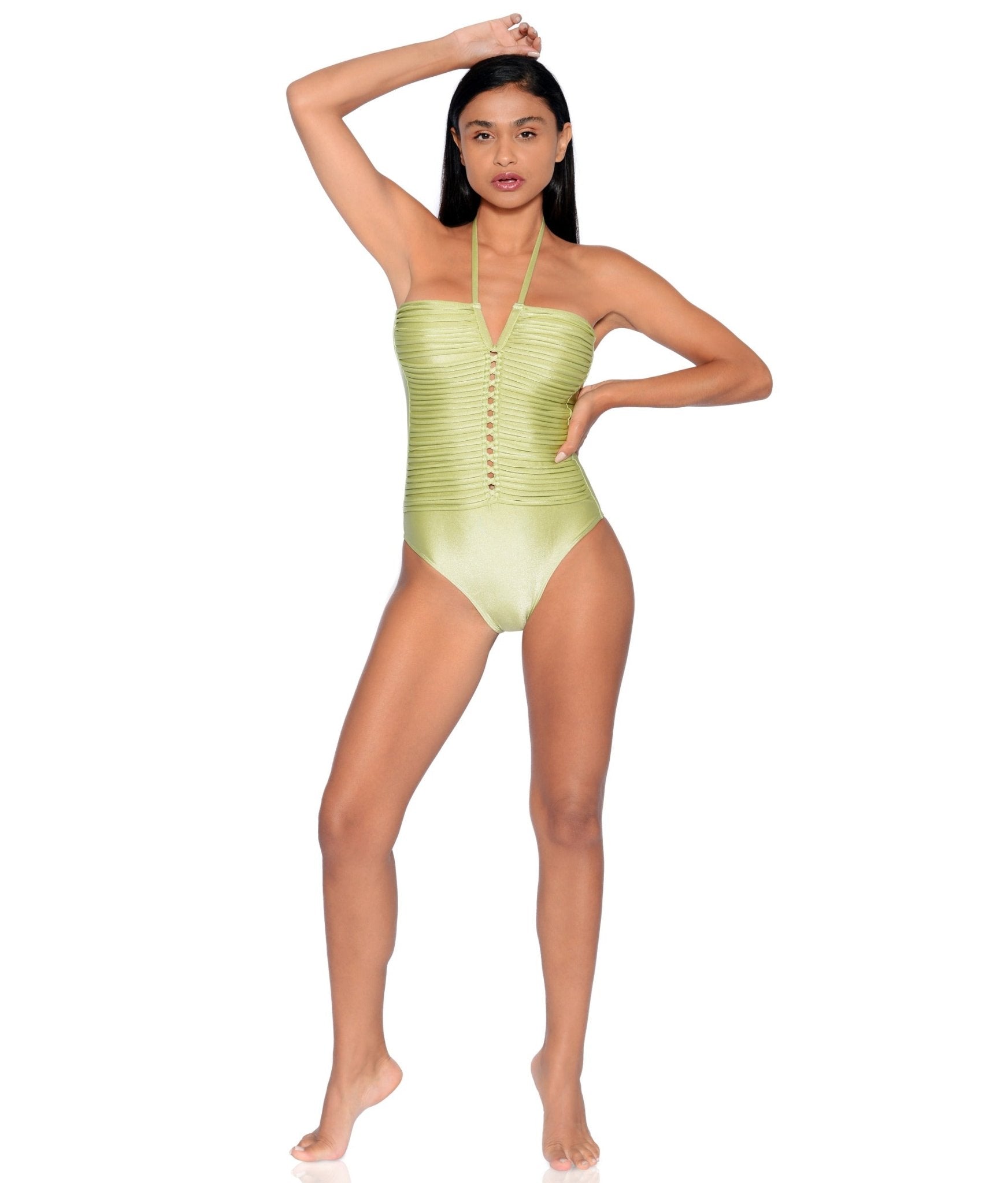 Crafted by hand  the shimmery macrame swimsuit top featured in this swimwear set carries with it a certain chicness.