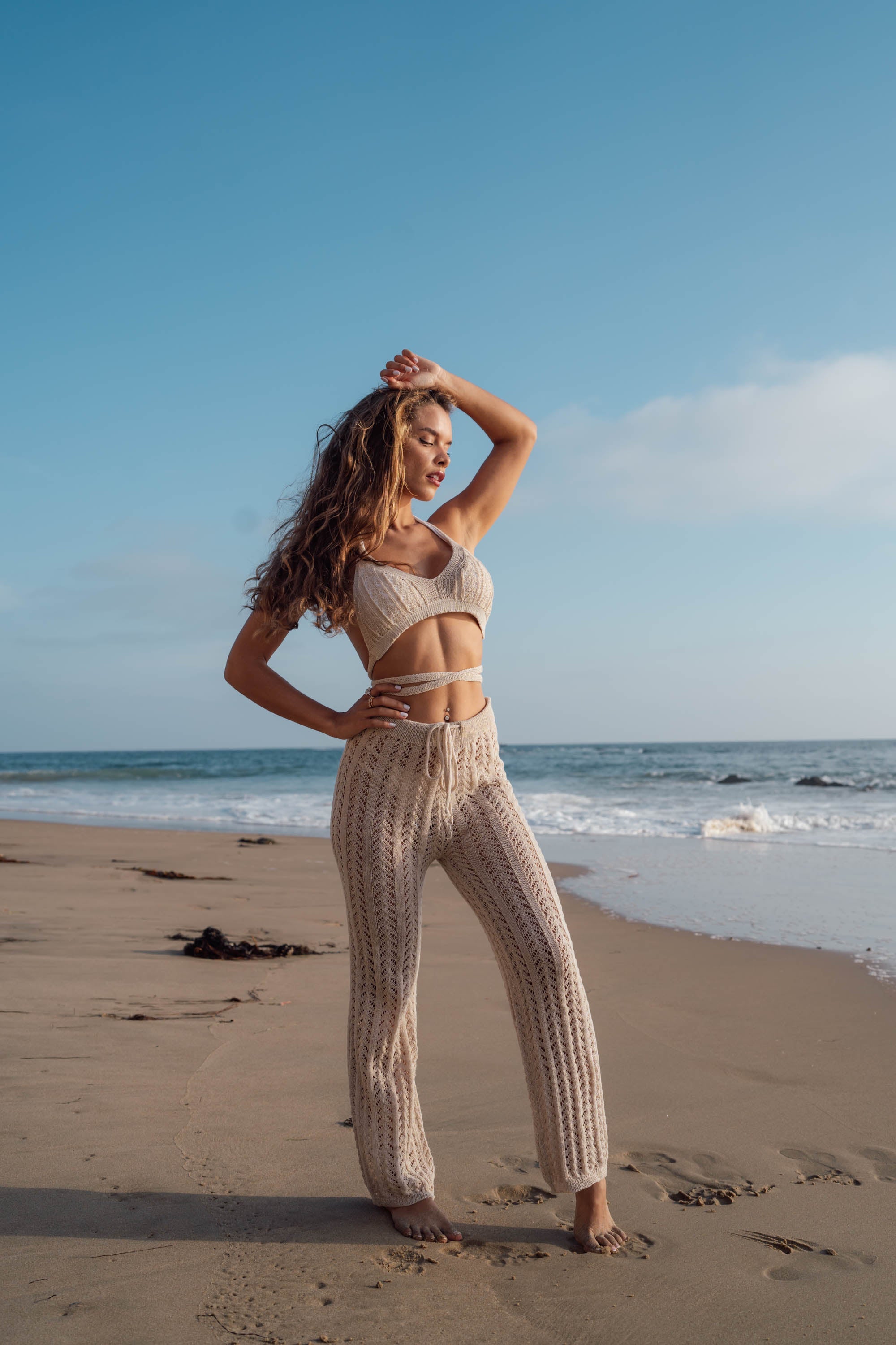The Daphne Two Piece Coverup set is perfect for hitting the beach or going to the hottest pool parties. Featuring a cream crochet waist tie. Slip into these pants effortlessly with the elastic waistband. Wear the set together for a chic and coordinated outfit that's bound to turn heads. Or, mix and match each piece with your favorite bikini or summer attire.