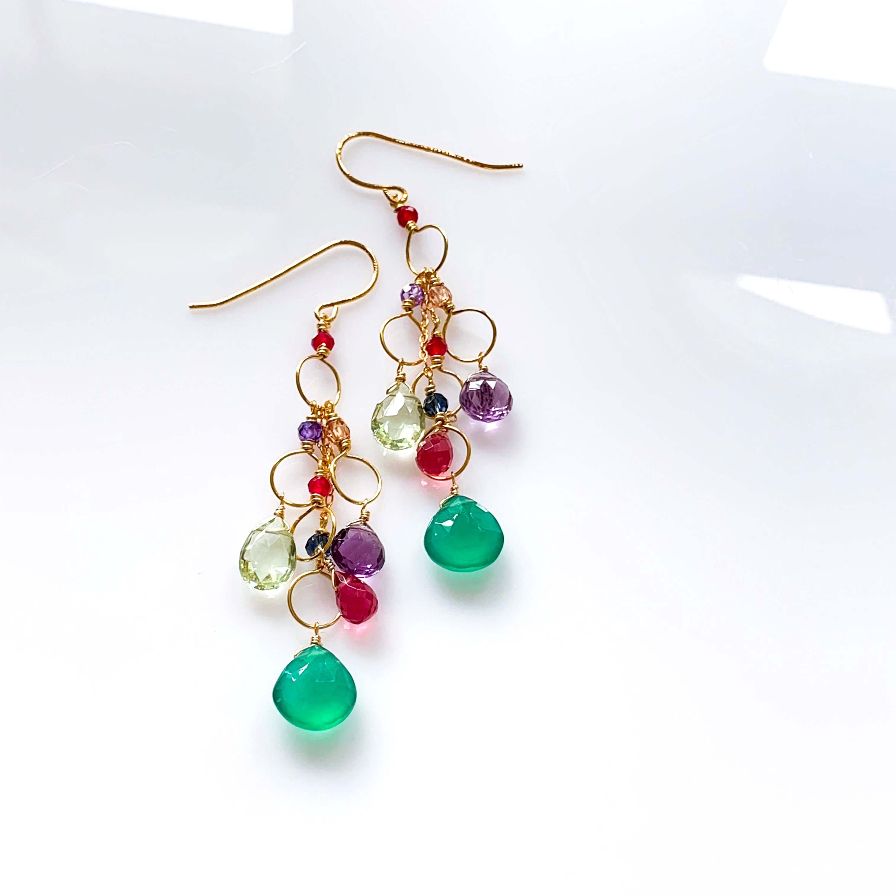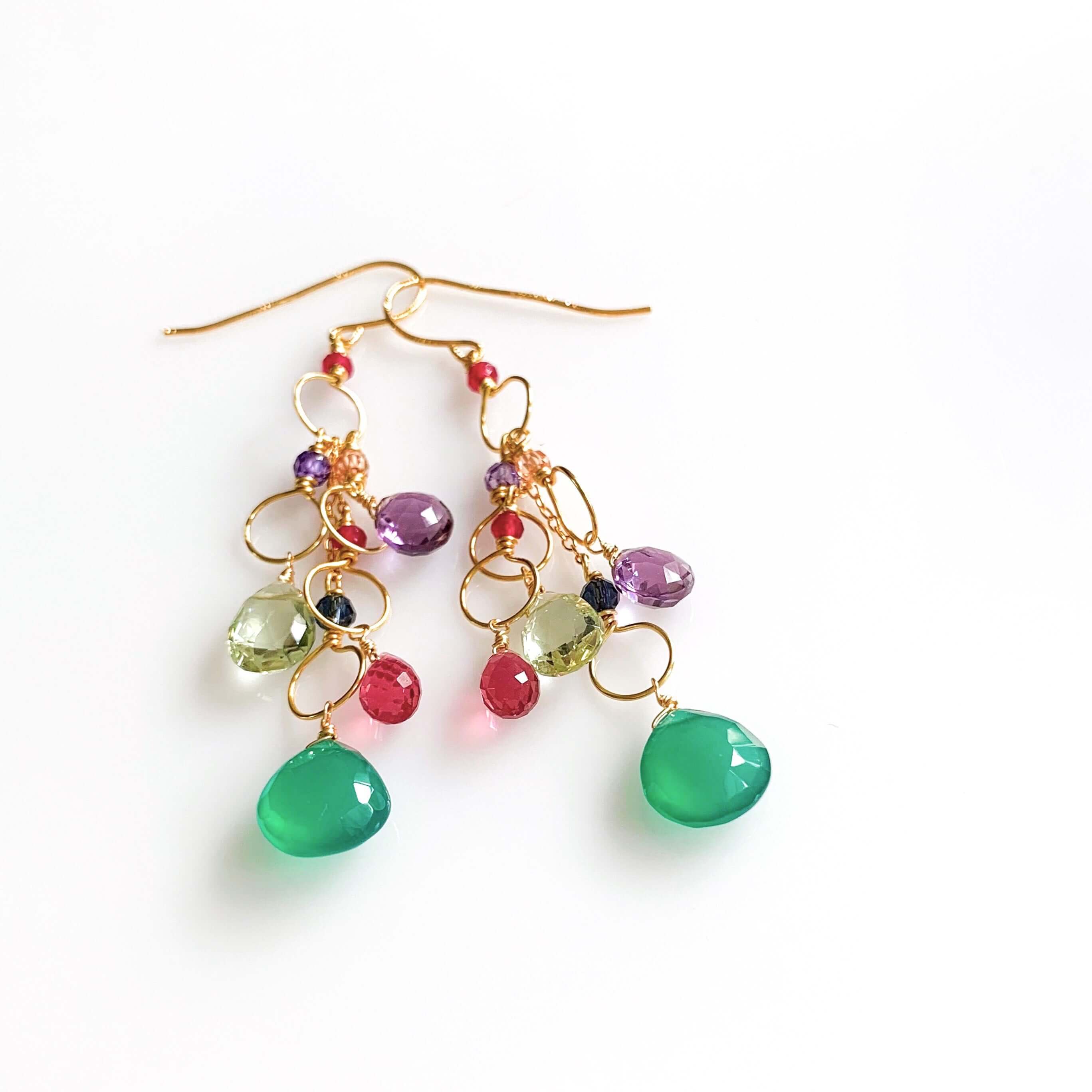 Colorful gemstone chandelier earrings.