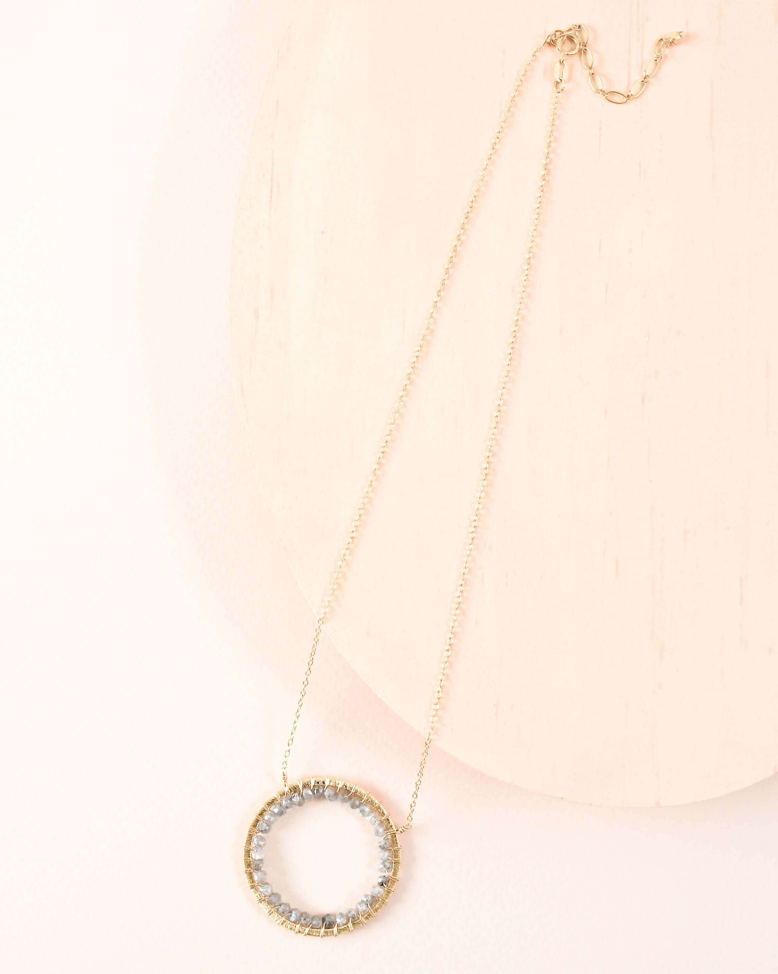 The Halo collection was our very first one. Intended to symbolize the intricate, universal energy woven within us all. This beautiful necklace is ultra lightweight and perfectly handmade featuring sparkling Labradorite gems woven into our unique floating pendant design.