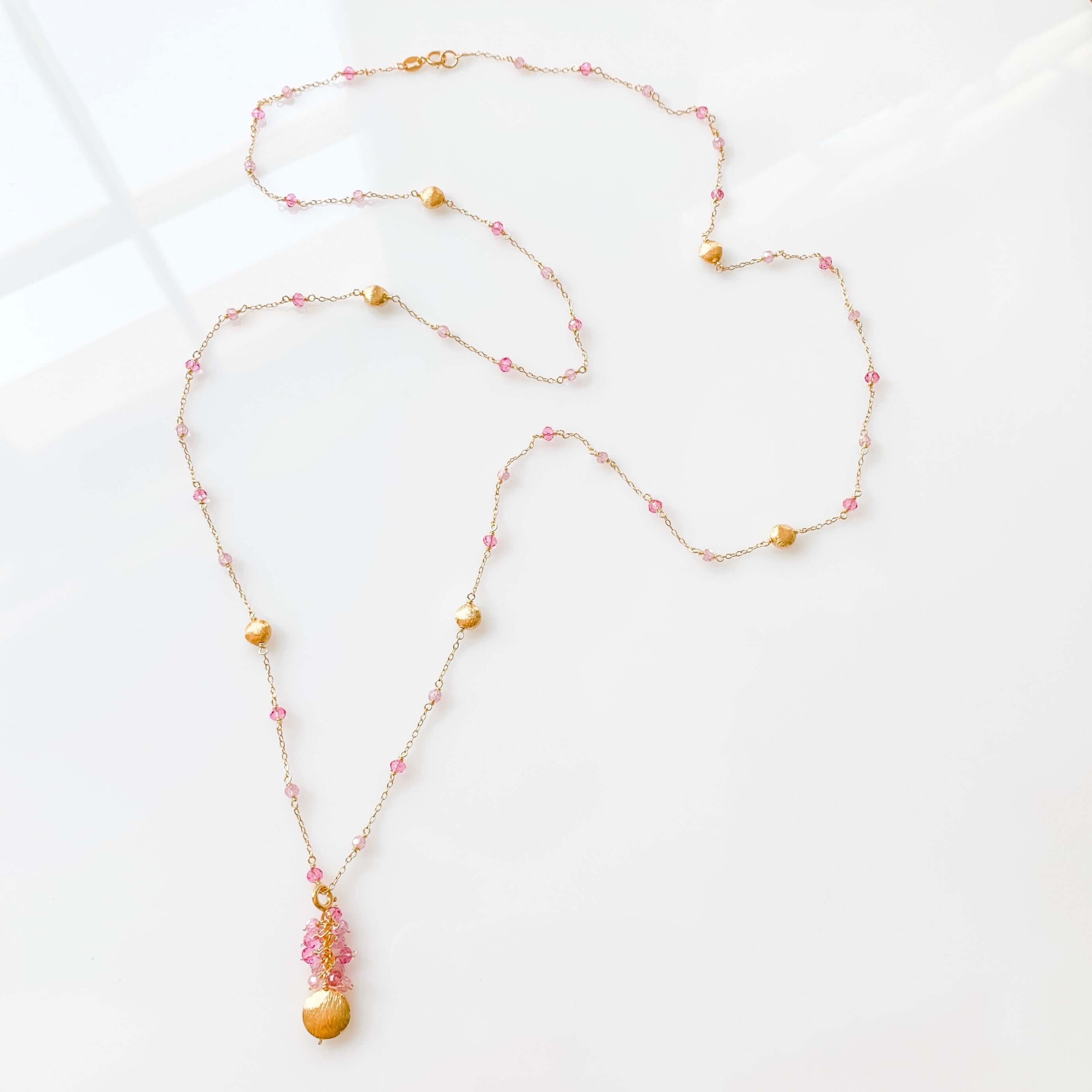 Necklace can be worn multiple ways. Detach the gemstone pendant to wear as a long beaded chain. Double up the chain to wear as a shorter style or wear as a long gemstone pendant