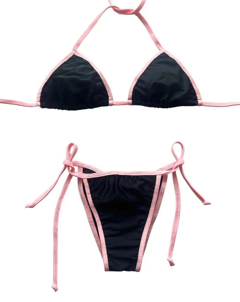 The Alice Top is a non-padded top with a timeless triangle design, complemented by a contrast trim in the team colors. Adjustable ties at the neck and back for a personalized fit.