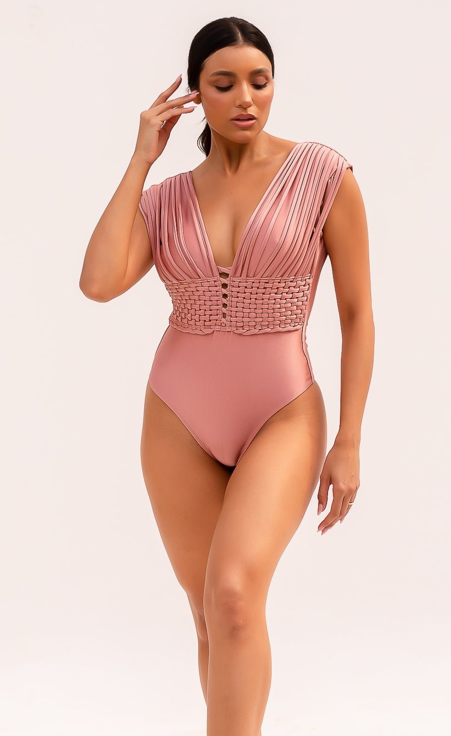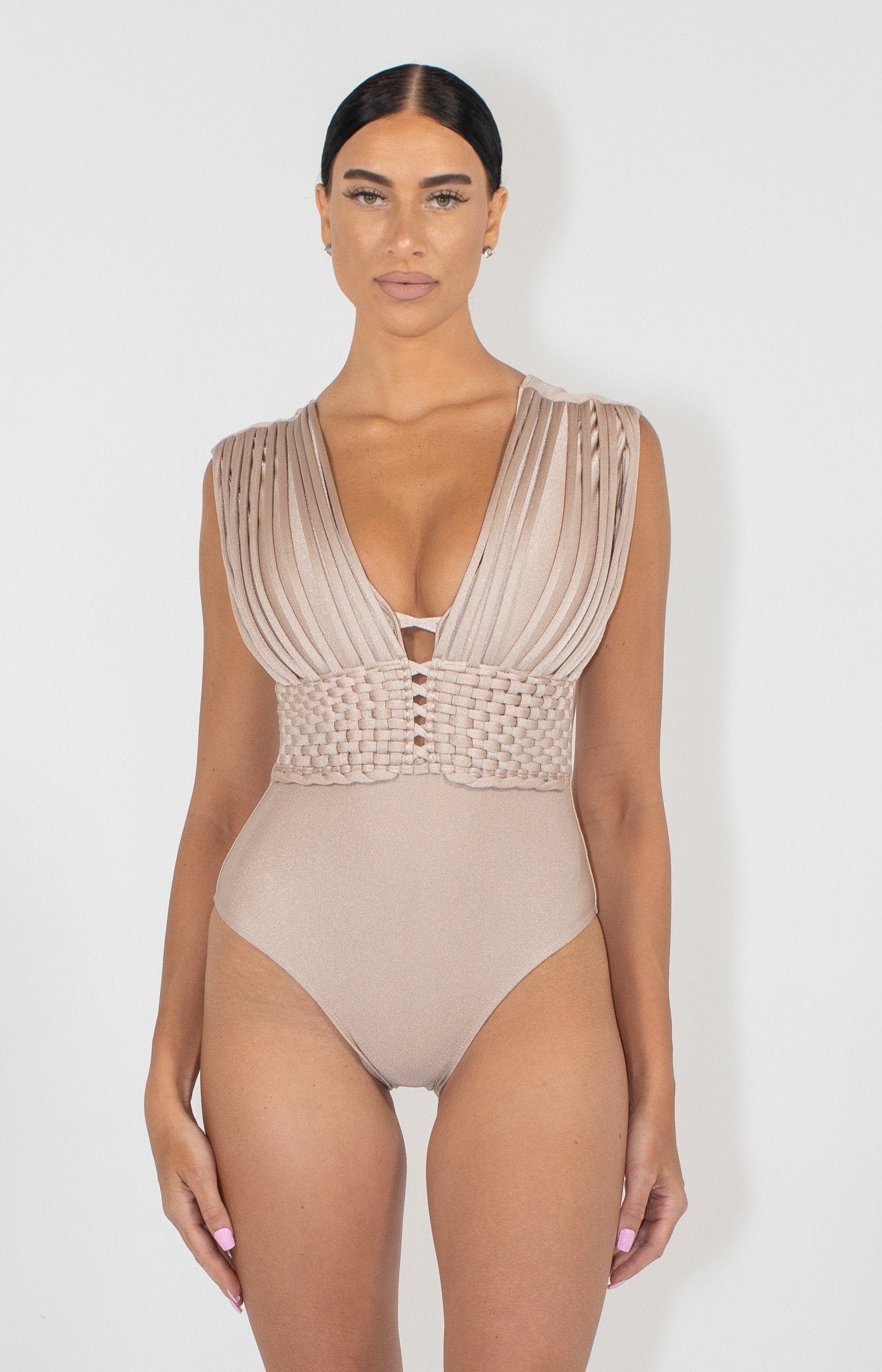 Crafted by hand the shimmery macrame swimsuit top featured in this swimwear set carries with it a certain chicness.