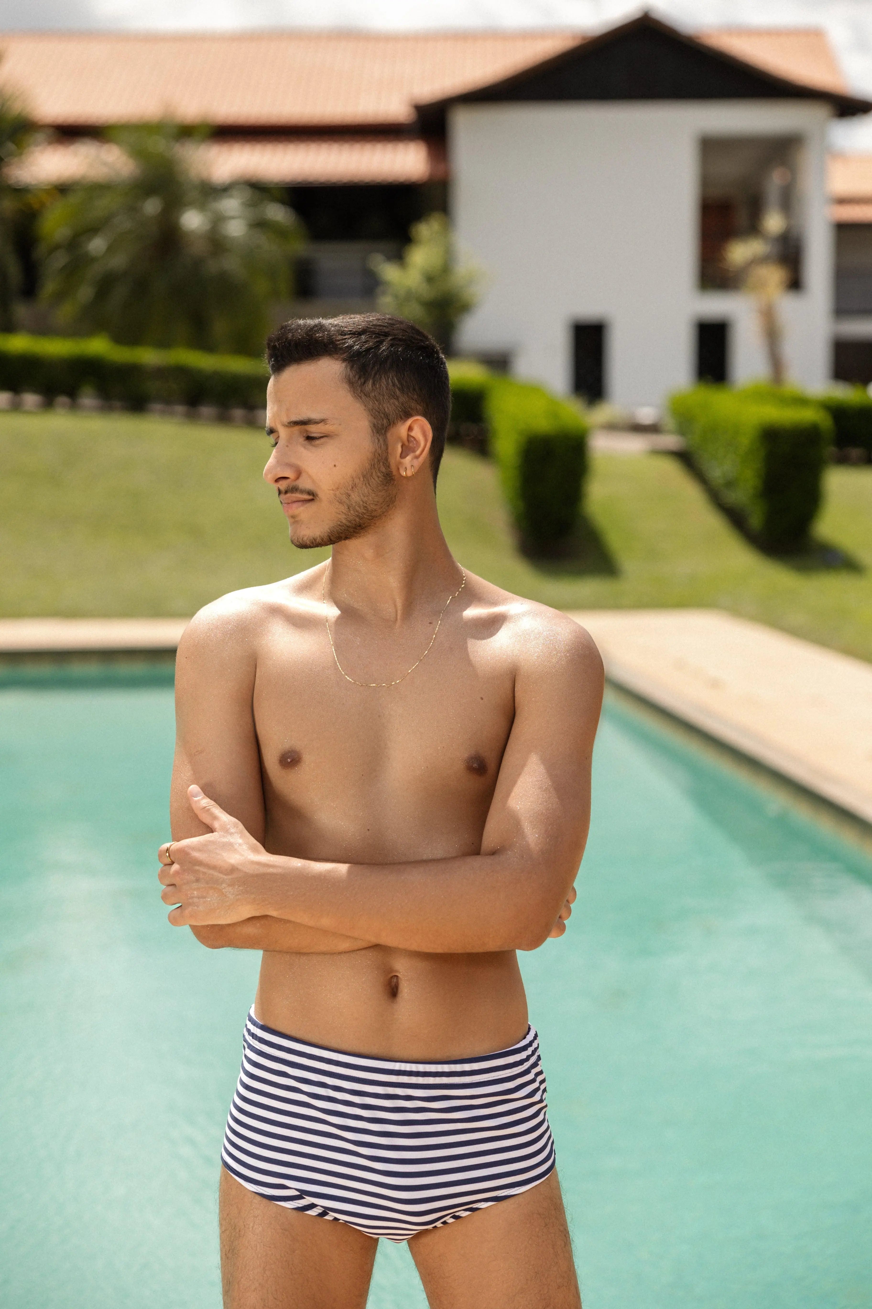 Upgrade your swimwear with our Striped Sunga Swim Briefs, showcasing the traditional Brazilian sunga design with classic striped prints. Featuring wide side panels, an elastic waist, and adjustable drawstrings for a secure and comfortable fit, these swim briefs are fully lined for maximum comfort and freedom of movement. Perfect for a classic and bold look at the beach or pool.