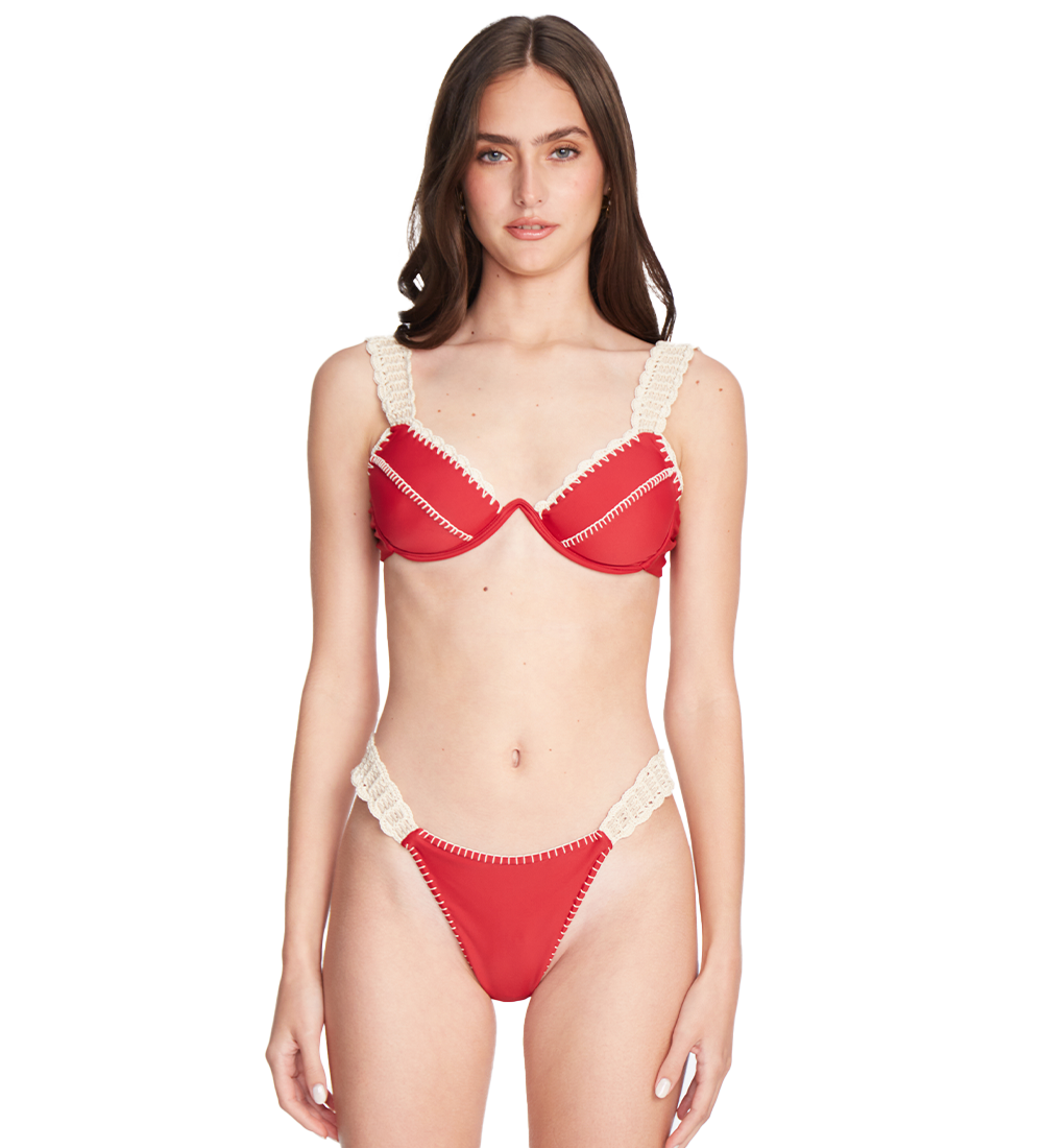 Our classic Alessia now in the hottest color of the season. With crochet details on top and bottom straps and cups, it ensures a perfect fit and a modern style. Ideal for those who are looking for a bikini that combines comfort and fashion at the beach.