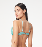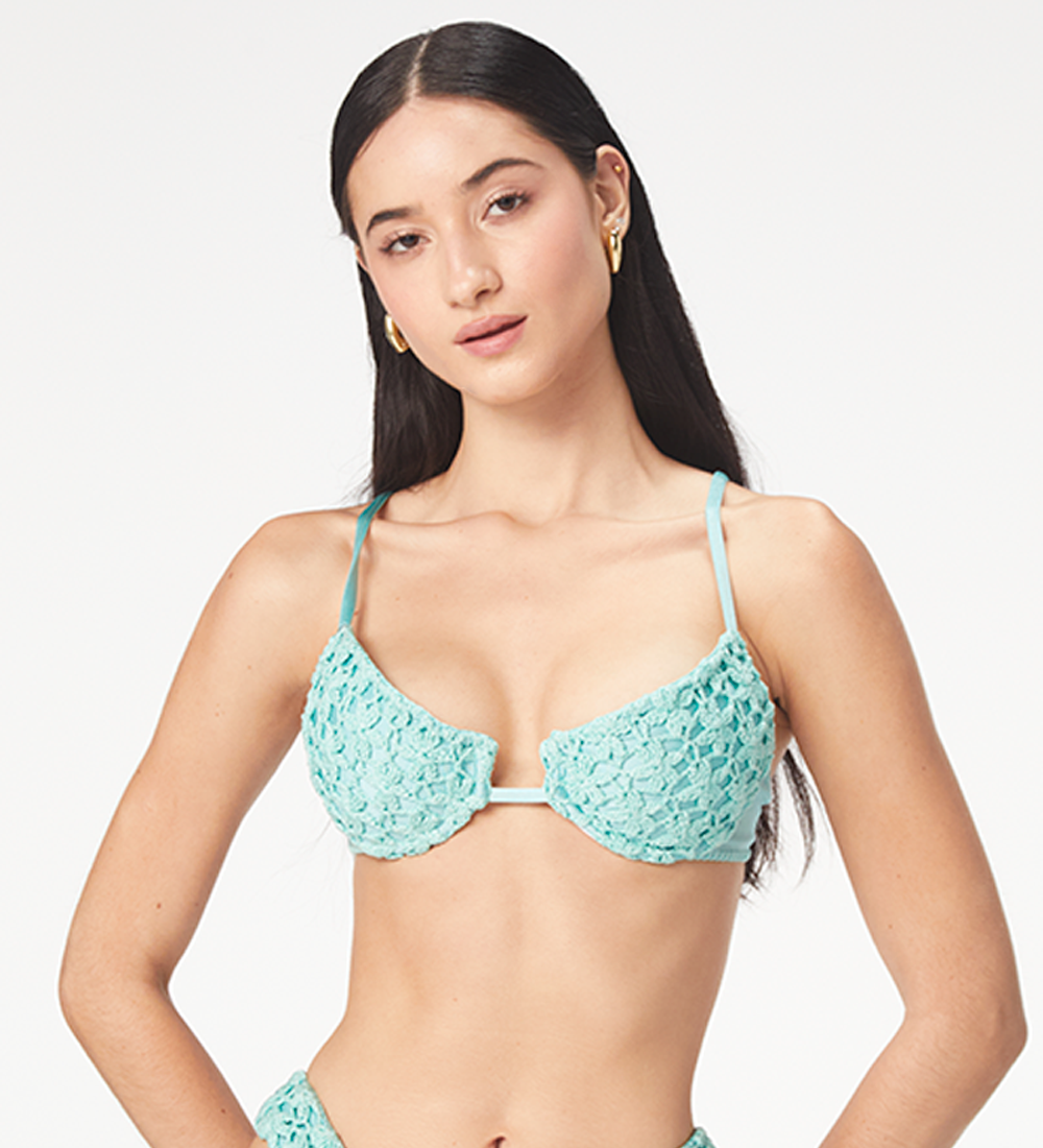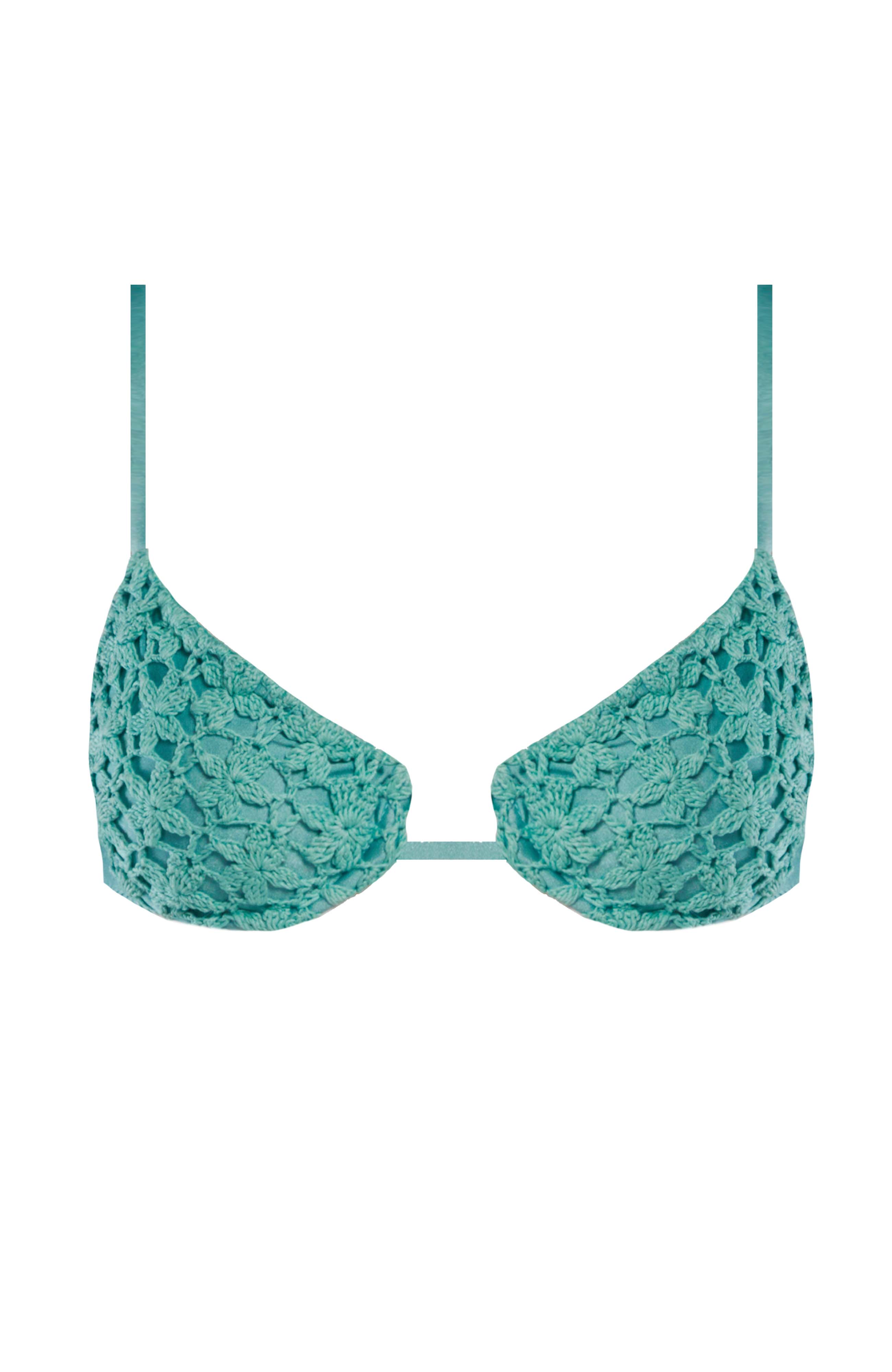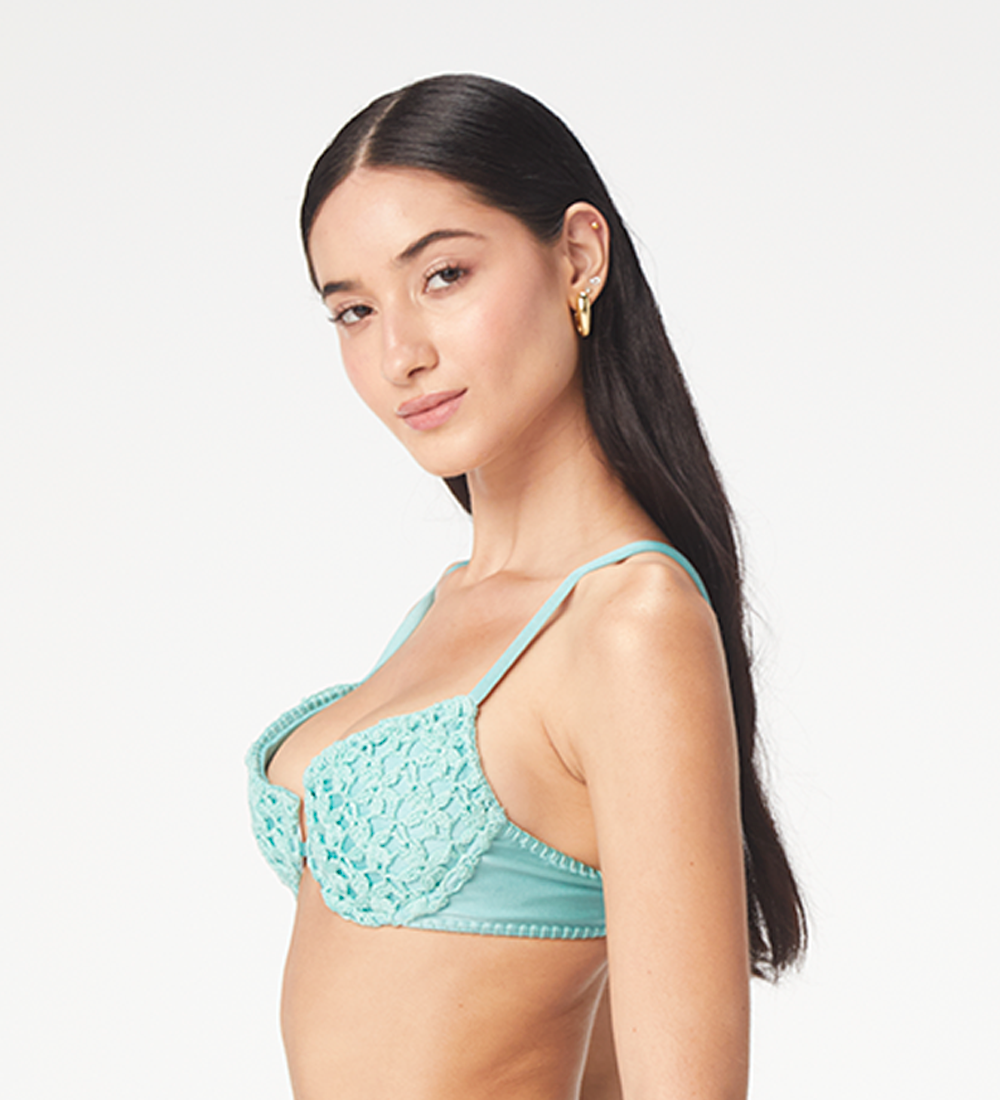 The cutest! Mint bikini with full crochet details on the top and bottom, high-leg bottom and adjustable straps on the top. Produced in a sustainable factory and handmade by Peruvian artisans.