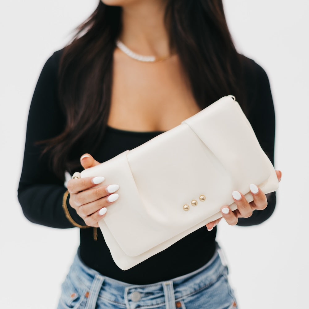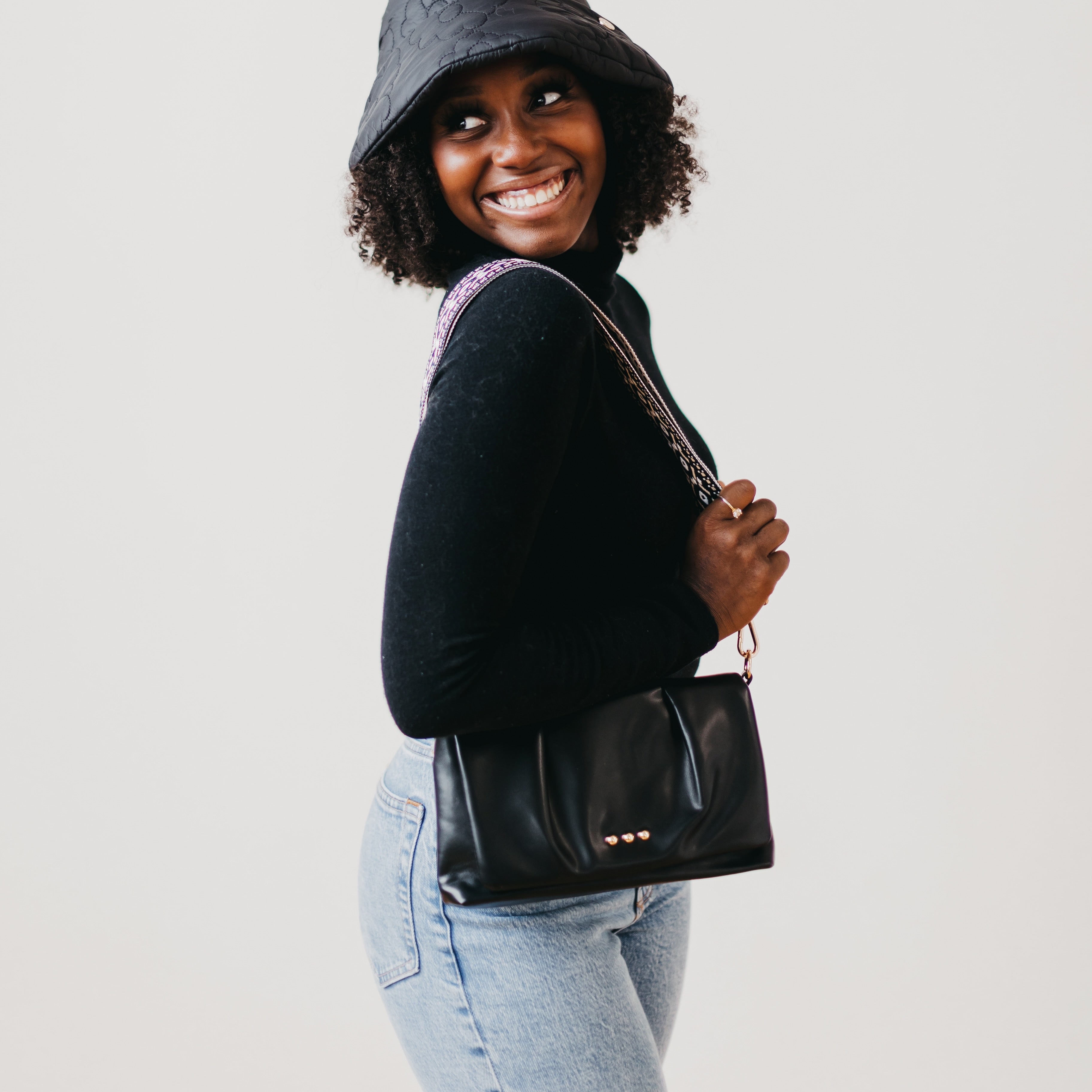 The Aurora Crossbody Clutch Bag is another addition to our 3 Sisters Collection! This collection is inspired by the unbreakable bond shared between the owner/founder of Pretty Simple and her 2 sisters. These bags are marked with three signature studs and will complete outfits, catch eyes, and remind wearers of the incredible connection to their own sisters, whether through blood or by choice. You can see it in our inspiration and mission.