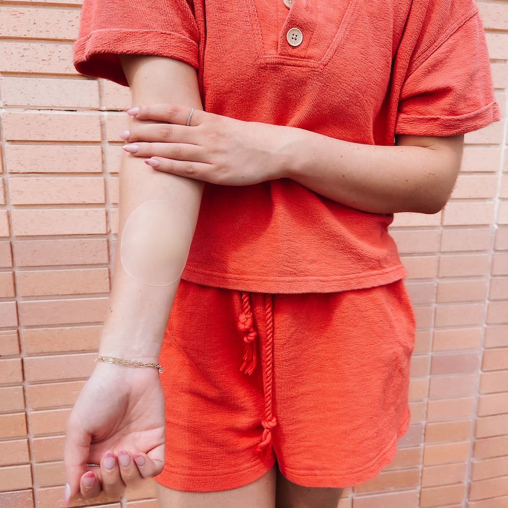 Please note: Darker skin tones may lighten or discolor with adhesive use. Do not use it on open wounds or cuts, skin disorders, sunburned skin, or depigmentation. If you have skin or adhesive sensitivities, wear with caution. Discontinue use if skin irritation occurs. If concerned, consult a physician.