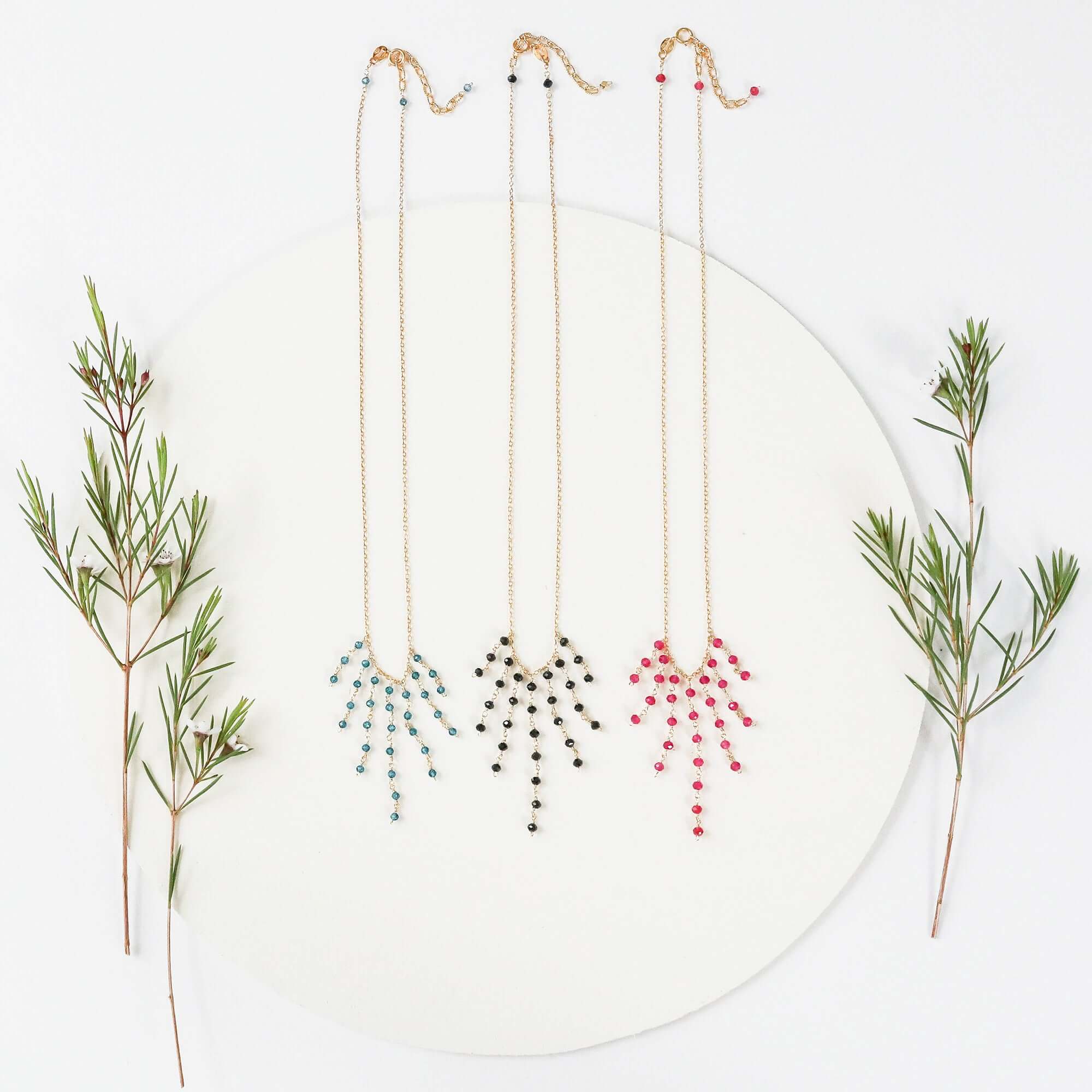 These super delicate necklaces are our unique gemstone version of fringe jewelry.