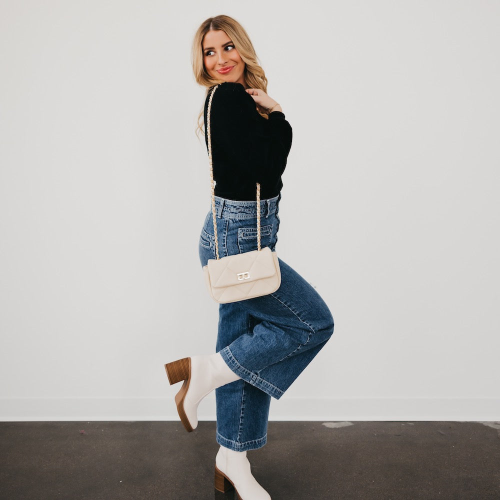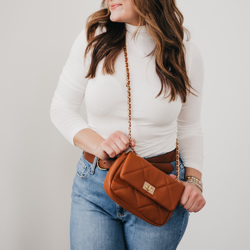 Slay the city streets in style with this Queenie Quilted Crossbody Bag! Our vegan leather bag features trendy quilting and a gorgeous chain strap. Wear the strap long as a crossbody, or take the chain out from the bag and pull it up to create a double chain shoulder strap! Keep your items secure with the locks on the exterior, and a zipper pocket on the interior. Look classy, sassy, and chic all day long with this new accessory!