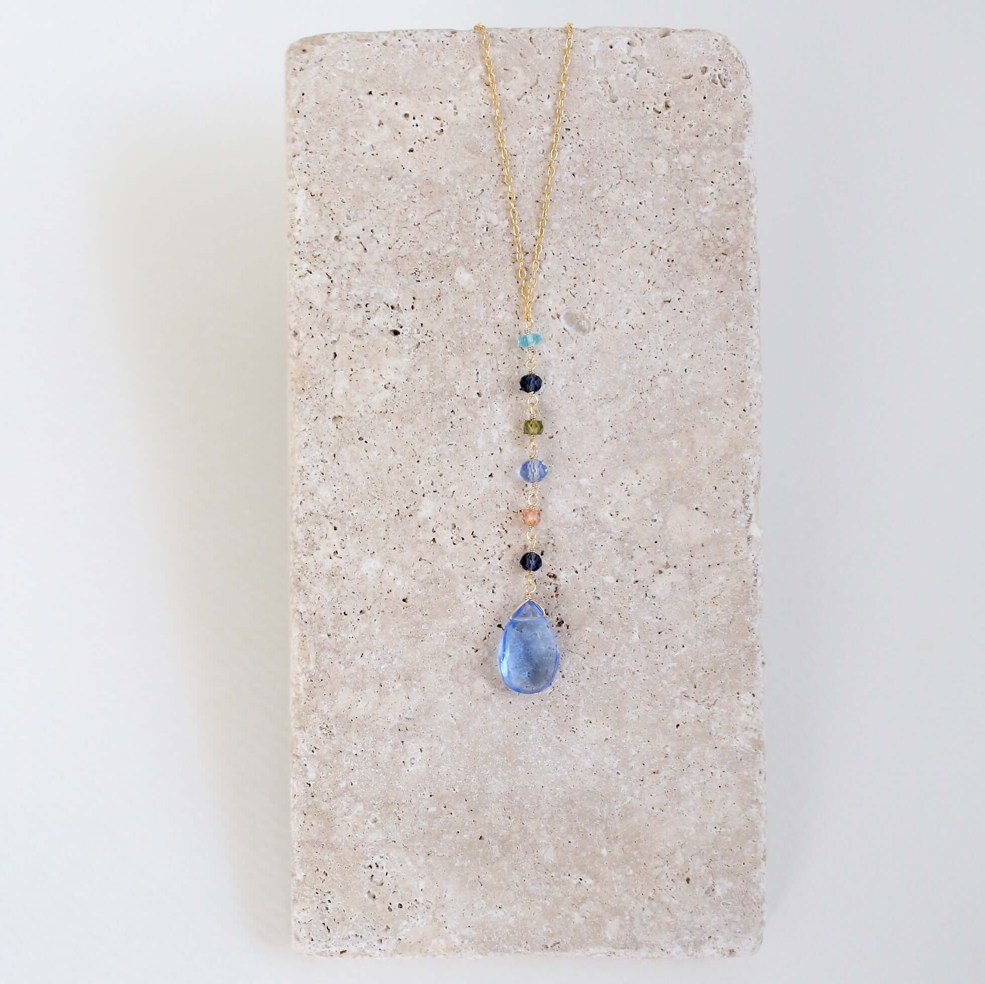 - Y pendant style- Sky quartz gemstones paired with multi color gemstone accent stones