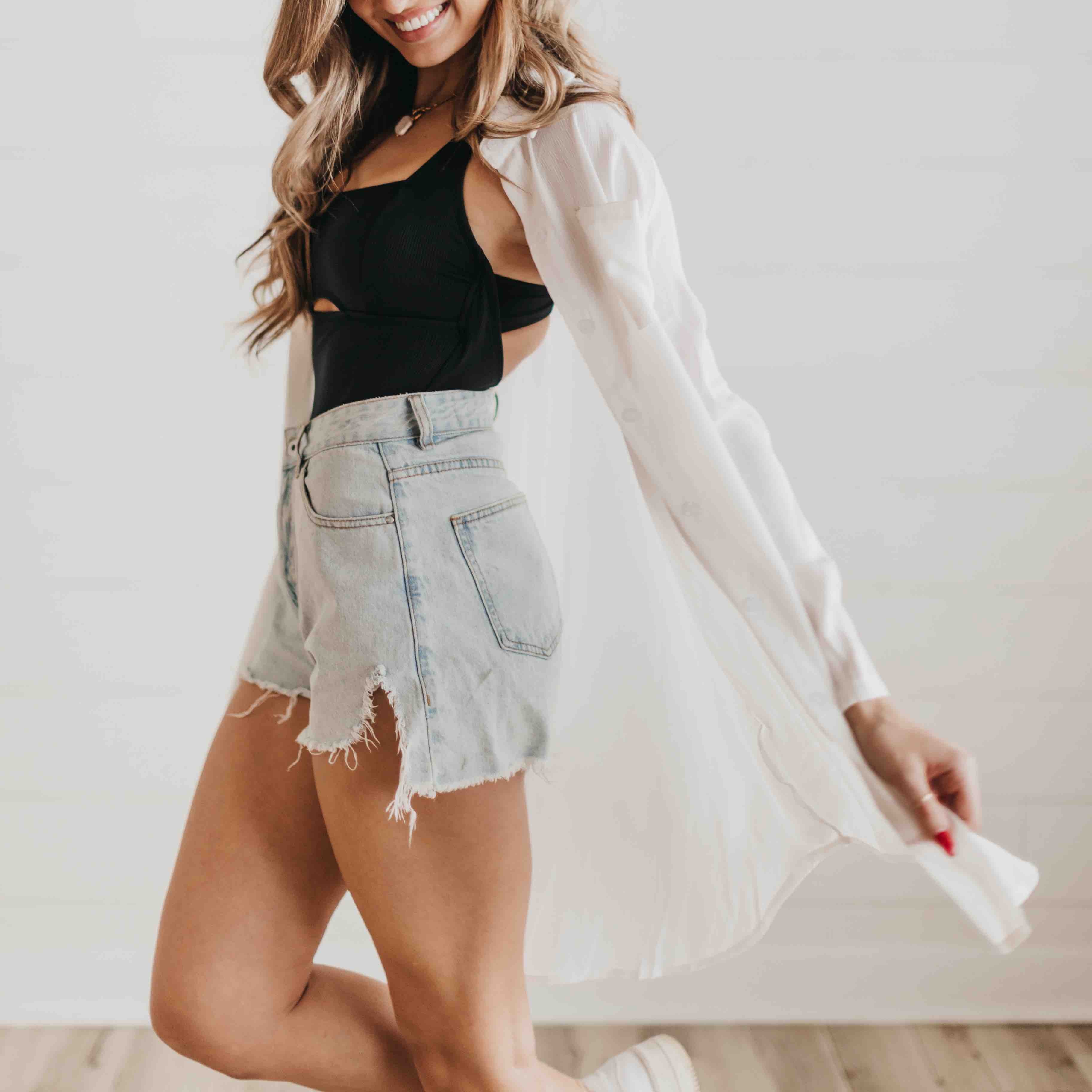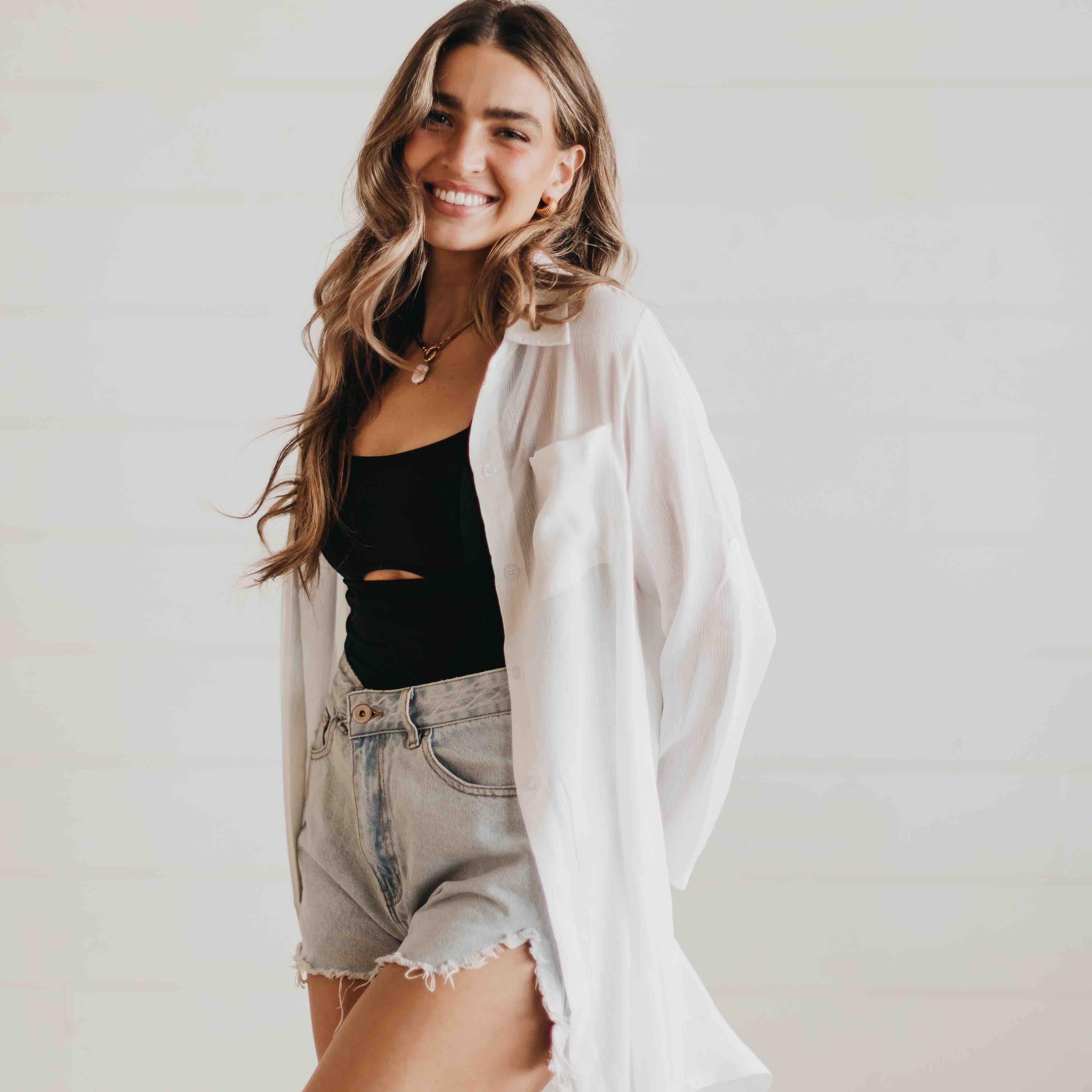 The Summer Saturdays Beach Shirt is an easy cover-up shirt that offers semi-sheer coverage.
