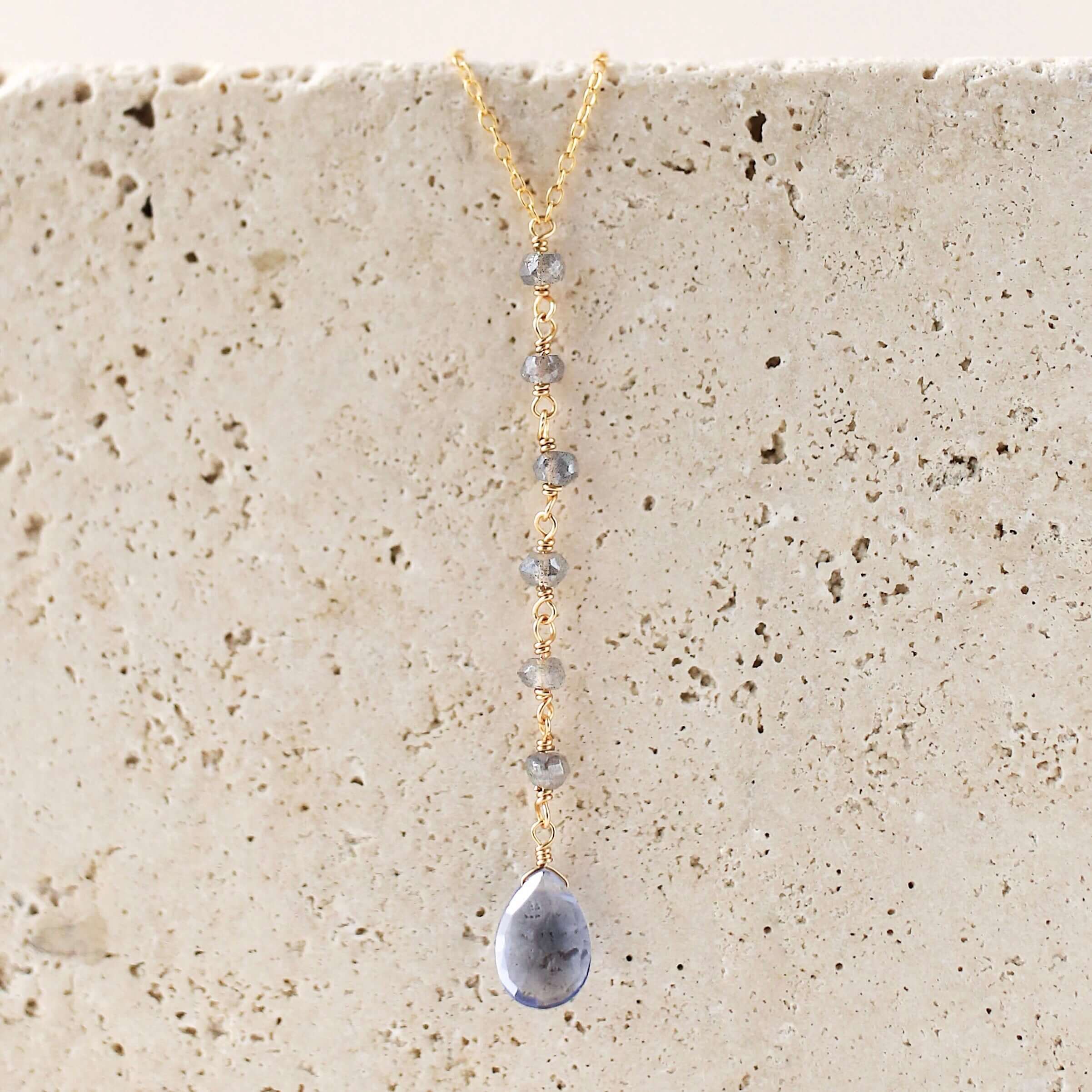 - Y pendant style- Tanzanite quartz gemstone partnered with labradorite accent stones