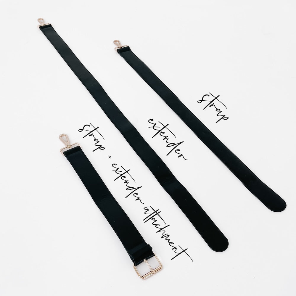- Measurements: BAG: 7"L x 9.5"H x 3"W / STRAP: 31" - 37.5" / STRAP EXTENDER: 41"- 46"