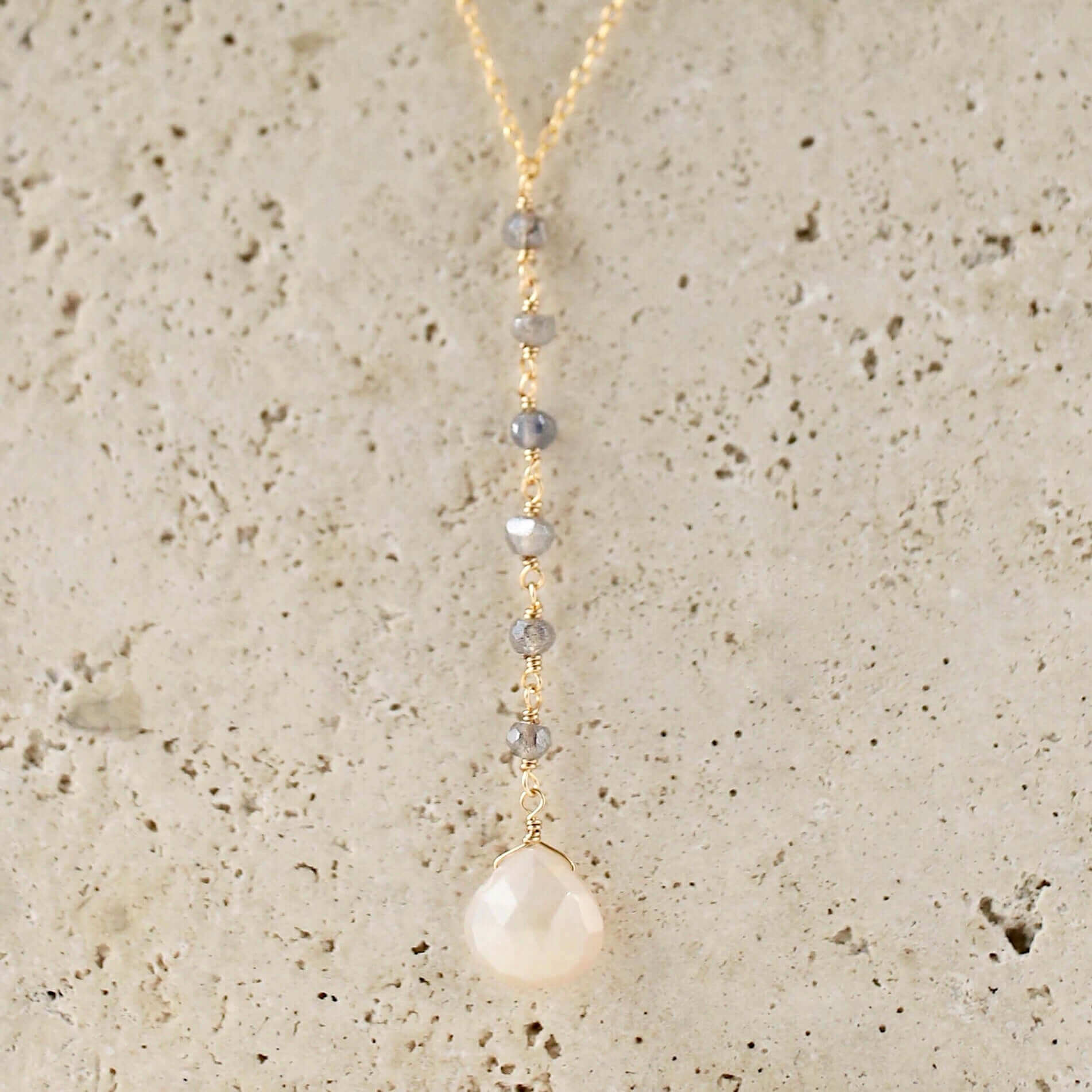 - Y pendant style- White chalcedony with faceted labradorite mini gems